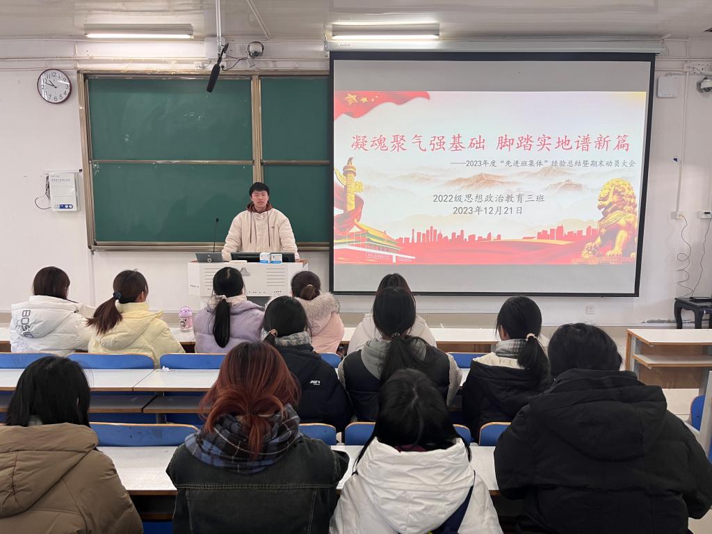 12月21日上午,小说狂人 2022级思想政治教育三班在社科楼514教室召开“凝魂聚气强基础,脚踏实地谱新篇”主题班会。小说狂人 2022级思想政治教育三班全体成员共同参与此次班会,班会由班长余浩洋主持。