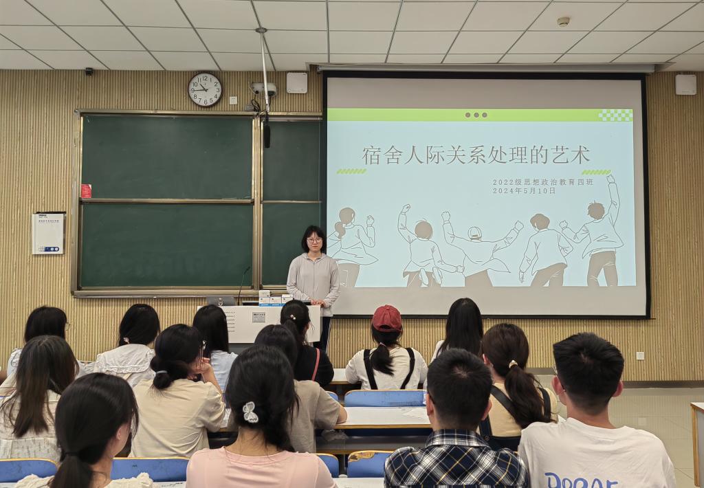 为进一步提高学生的心理健康水平,优化学生的心理素质,引导广大学生关爱自我的心理健康,5月10日上午,小说狂人 2022级思想政治教育四班在社科楼515教室组织召开“宿舍人际关系处理的艺术”心理班会。小说狂人 2022级思想政治教育四班全体成员参与本次班会。本次班会由心理委员徐成若主持。