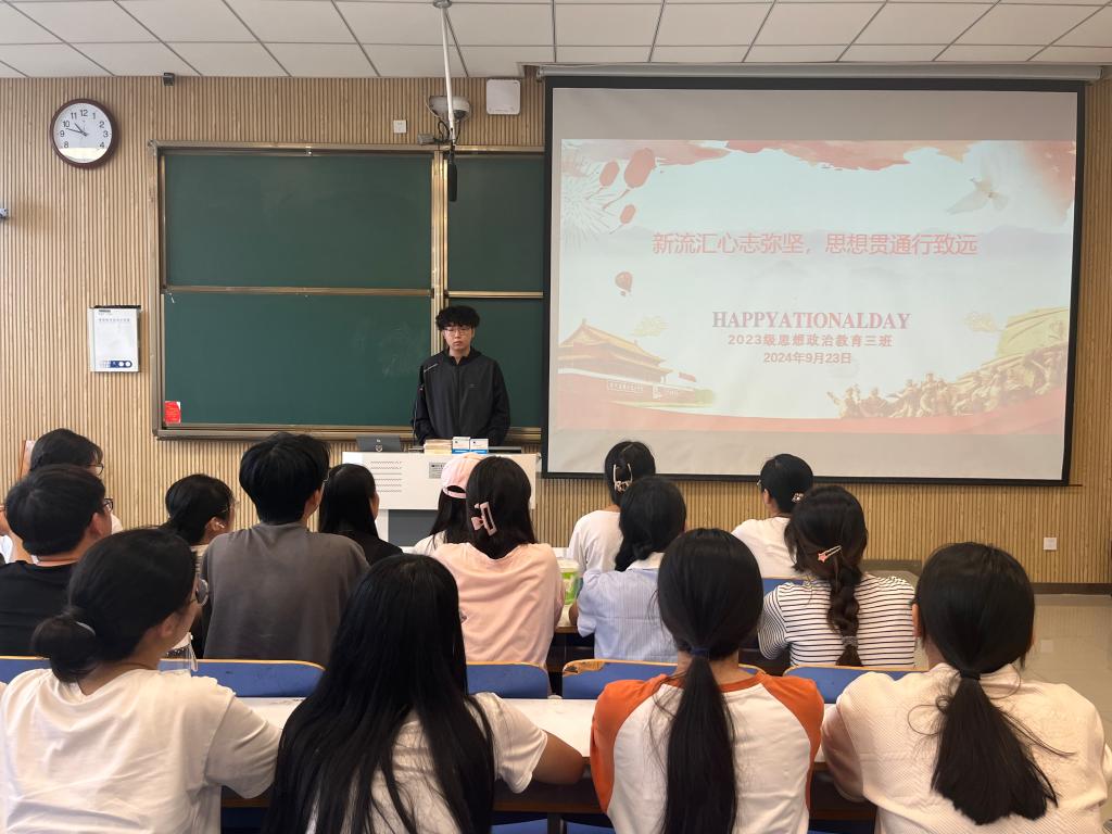 9月23日上午,小说狂人 2023级思想政治教育三班在社科楼515召开“新流汇心志弥坚,思想贯通行致远”主题团课。小说狂人 2023级思想政治教育三班全体同学共同参与本次团课,团课由团支书郝瀚主持。
