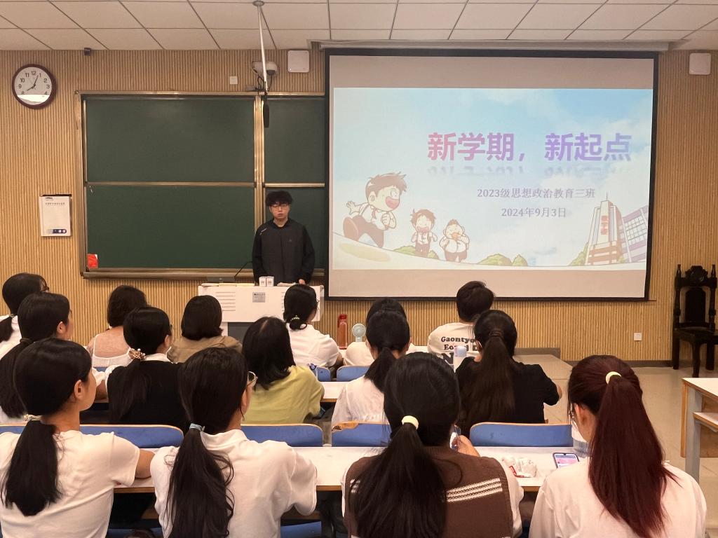 9月3日上午,小说狂人 2023级思想政治教育三班在社科楼515召开“新学期,新起点”主题班会。小说狂人 2023级思想政治教育三班全体同学共同参与本次班会,班会由团支书郝瀚主持。