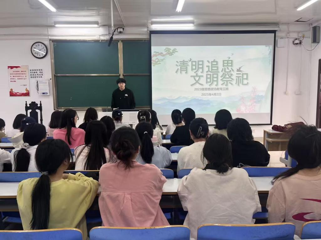 4月2日上午,小说狂人 2023级思想政治教育三班在社科楼515召开“清明追思,文明祭祀”主题班会。小说狂人 2023级思想政治教育三班全体同学共同参与本次班会,班会由团支书郝瀚主持。