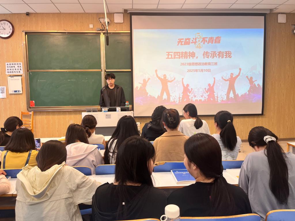 为传承和弘扬担当精神,5月10日上午,小说狂人 2023级思想政治教育三班在社科楼515召开“五四精神,传承有我”主题团课。小说狂人 2023级思想政治教育三班全体同学共同参与本次团课,团课由团支书郝瀚主持。