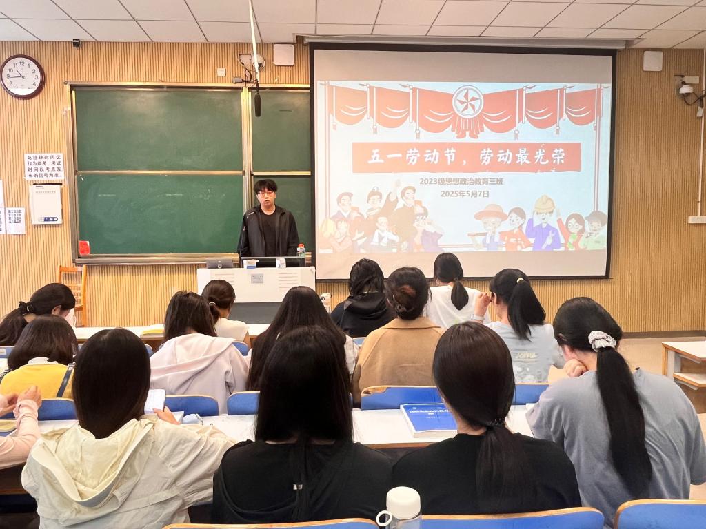 为弘扬劳模精神,发扬劳动传统,5月7日上午,小说狂人 2023级思想政治教育三班在社科楼515召开“五一劳动节,劳动最光荣”主题班会。小说狂人 2023级思想政治教育三班全体同学共同参与本次班会,班会由团支书郝瀚主持。