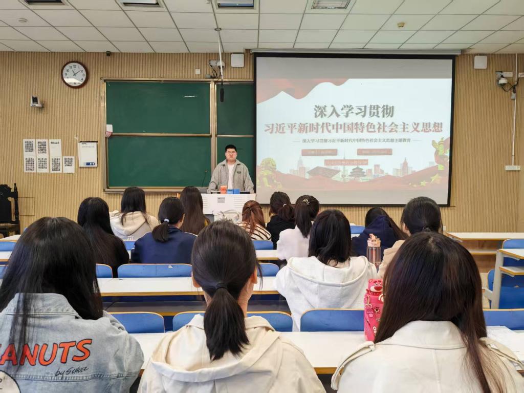 杨迎滨首先介绍了习近平新时代中国特色社会主义思想的重大意义和丰富内涵,通过播放短视频、展示PPT等形式,生动形象地展示了习近平思想在治国理政各方面取得的伟大成就。随后,同学们围绕“习近平思想指引我成长”这一主题展开了热烈讨论。有的同学结合自己的专业学习,分享了如何将习近平思想中的创新理念应用到学术研究中;有的同学则从社会实践经历出发,讲述了自己在志愿服务、实习实训中如何践行习近平思想中的为民服务宗旨。同学们纷纷表示,通过此次班会,更加深刻地认识到习近平思想的真理力量和实践伟力,今后将以更加饱满的热情投入到学习和生活中,努力成为德智体美劳全面发展的社会主义建设者和接班人。