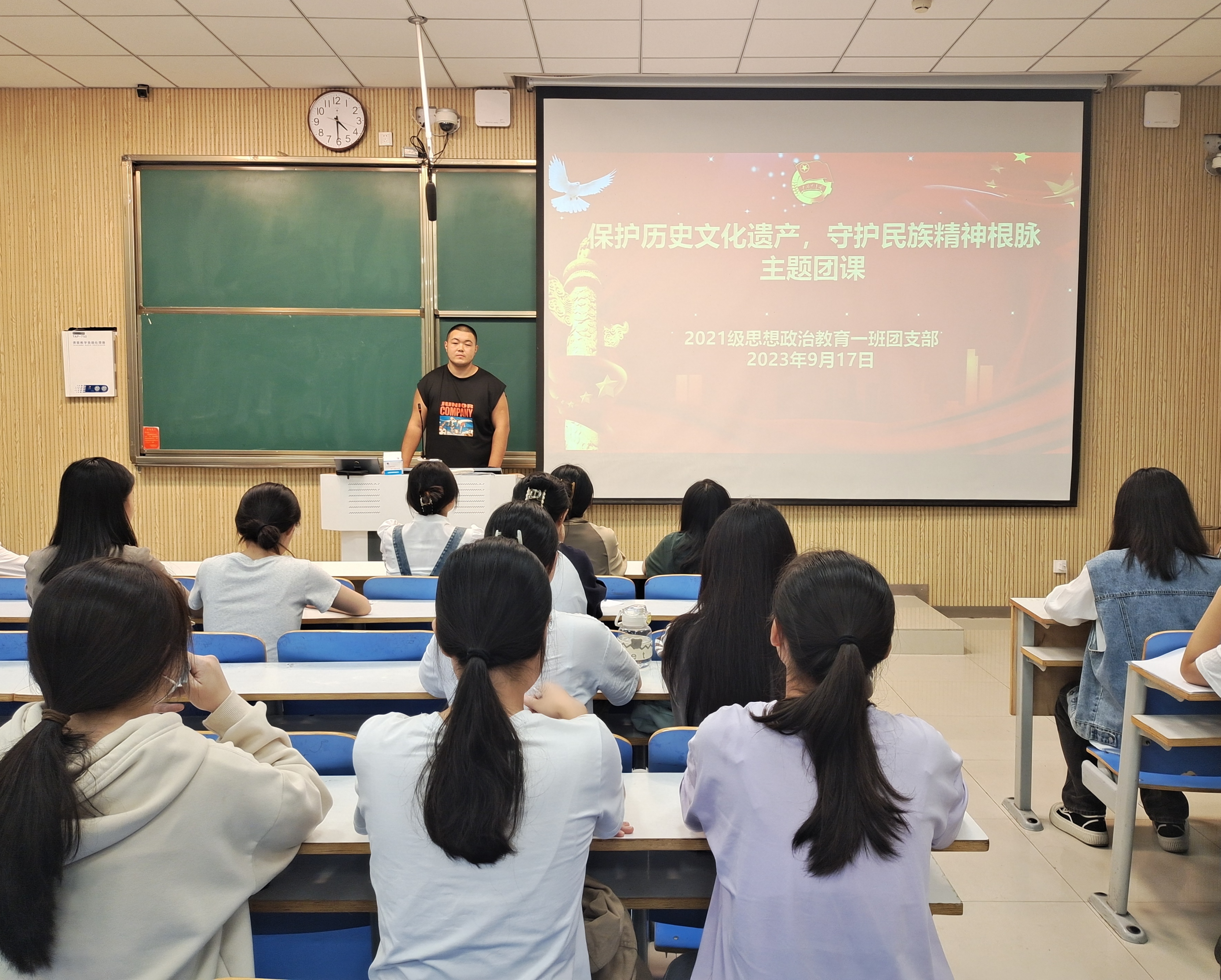 9月17日下午,小说狂人 2021级思想政治教育一班在社科楼515教室召开“保护历史文化遗产,守护民族精神根脉”主题团课。2021级思想政治教育一班全体团员共同参加本次团课。团课由团支书戴翰林主持。