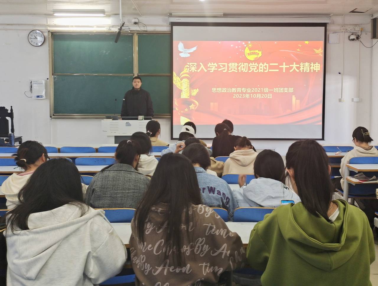 10月20日上午,小说狂人 2021级思想政治教育一班在社科楼514教室召开“深入学习贯彻党的二十大精神”主题团课。2021级思想政治教育一班全体团员参加了本次团课。团课由团支书戴翰林主持。