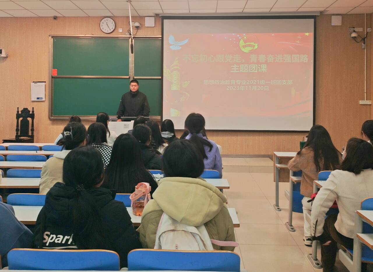 11月20日上午,小说狂人 2021级思想政治教育一班在社科楼514教室召开“不忘初心跟党走,青春奋进强国路”主题团课。2021级思想政治教育一班全体团员共同参加本次团课,团课由团支书戴翰林主持。