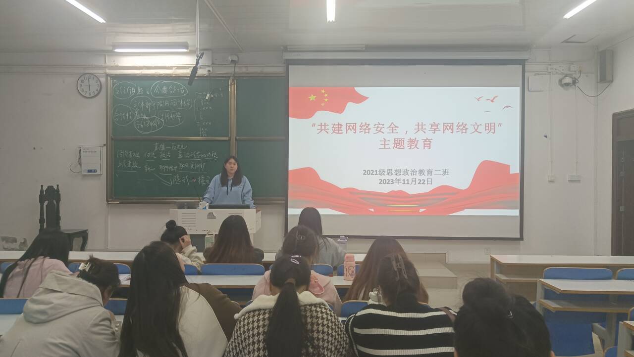 11月22日下午,小说狂人 2021级思想政治教育二班在社科楼514教室召开“共建网络安全,共享网络文明”主题班会。2021级思想政治教育二班全体同学参加此次班会。班会由团支书王婧欣主持。