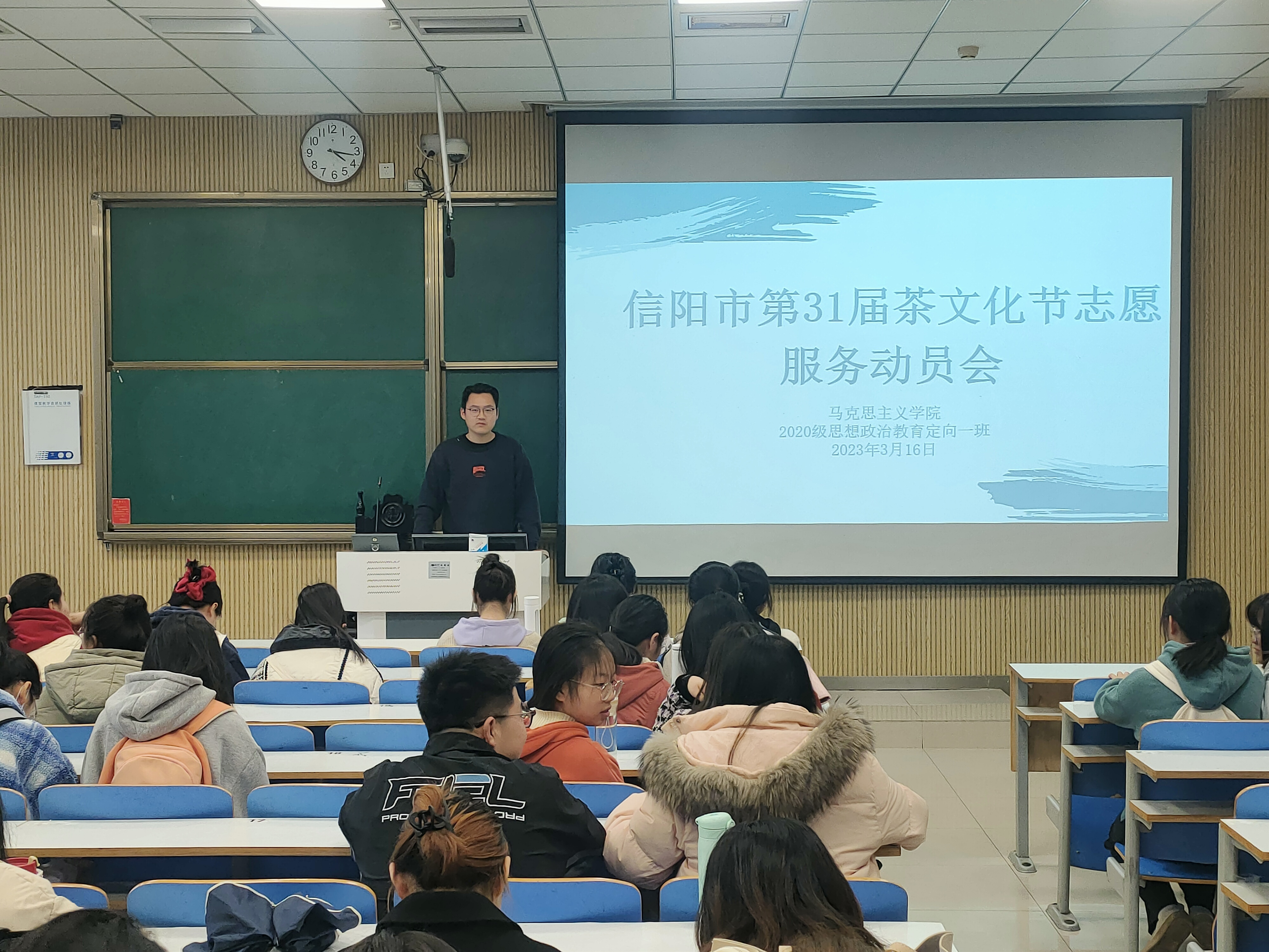 3月16日上午,小说狂人 2020级思想政治教育定向一班在社科楼515教室顺利举行了信阳市第31届茶文化节志愿服务动员会。此次班会由团支书朱紫峰主持。