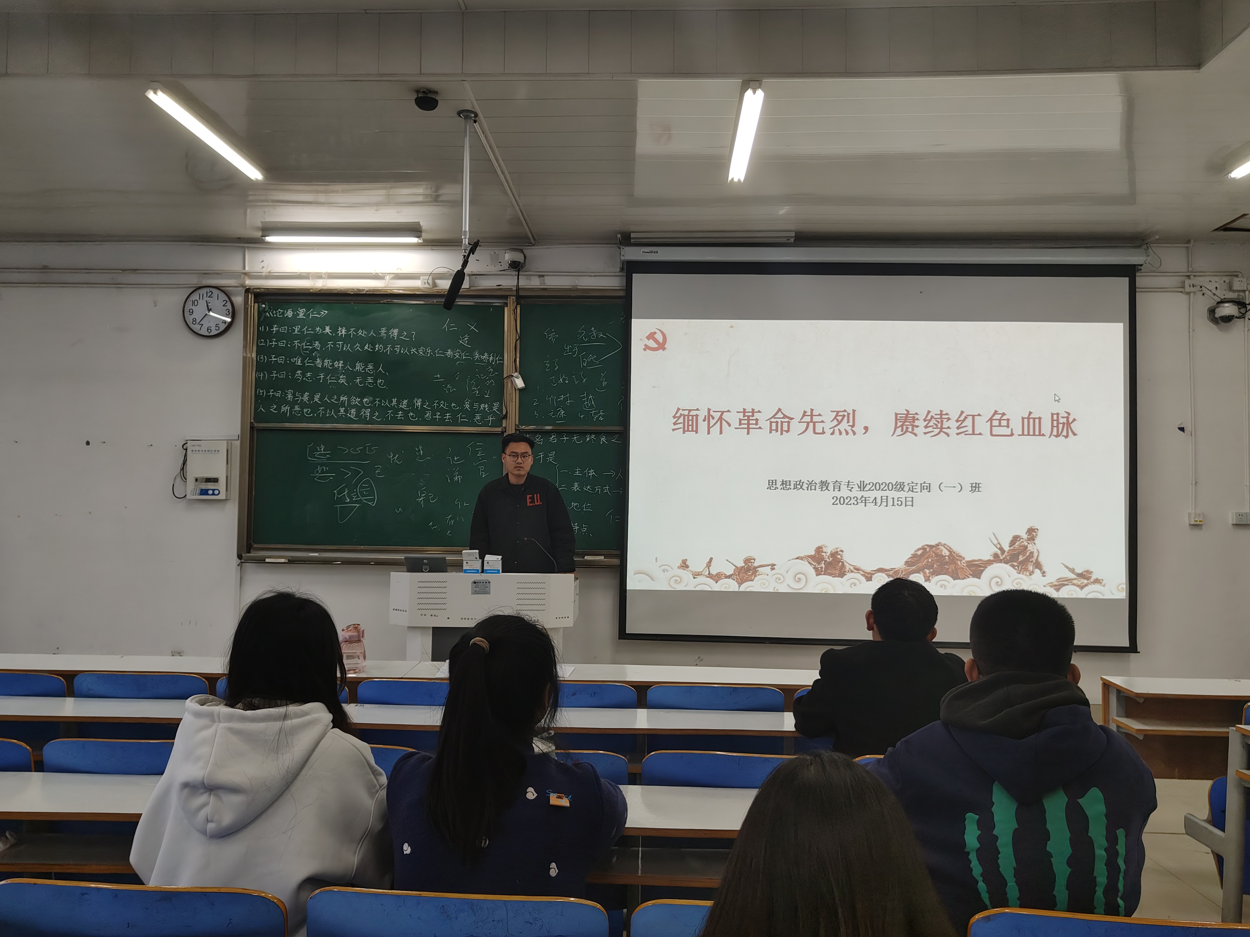 4月15日下午,小说狂人 2020级思想政治教育定向一班在社科楼515教室顺利举行了缅怀革命先烈,赓续红色血脉主题团课。此次班会由团支书朱紫峰主持。