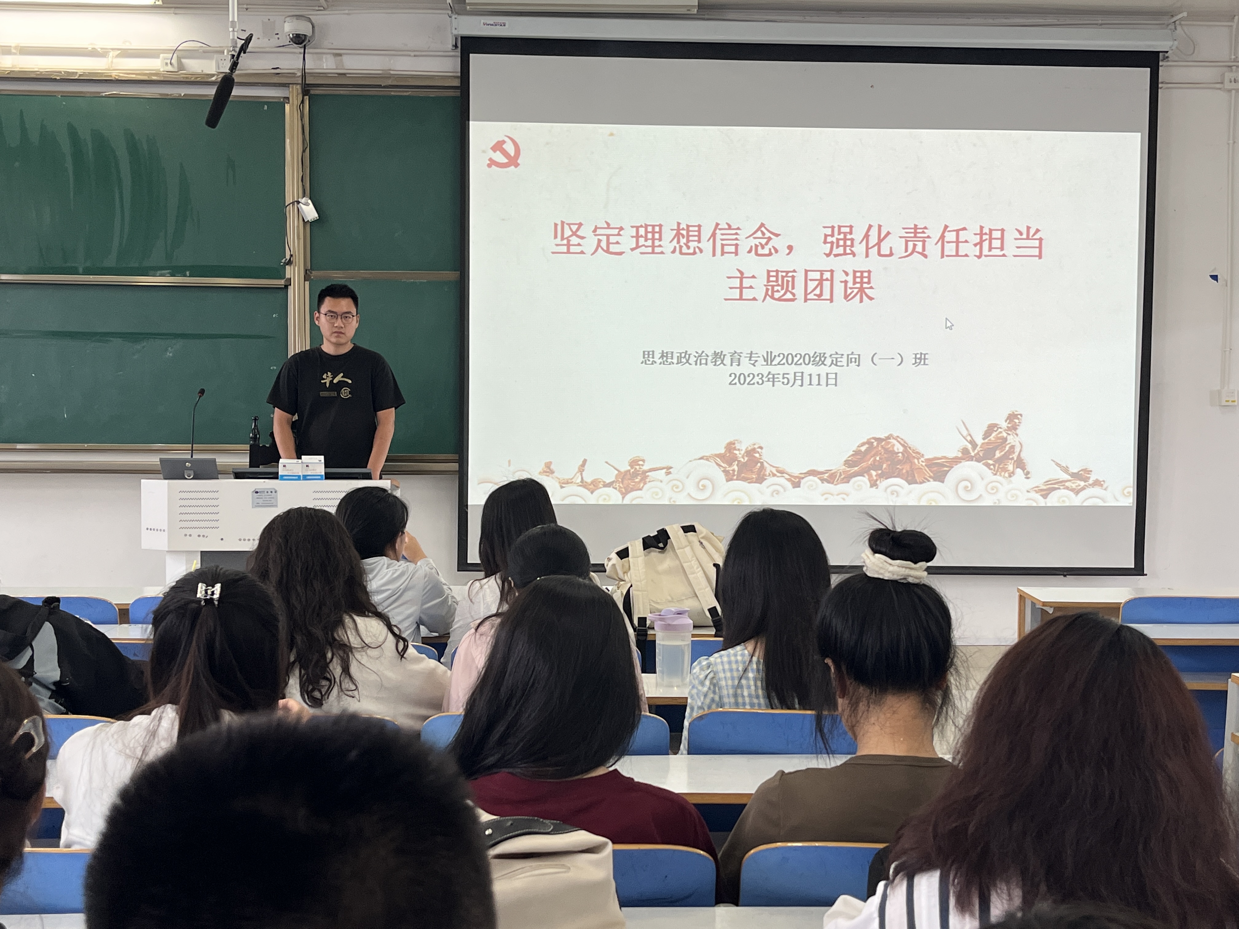 5月11日下午,小说狂人 2020级思想政治教育定向一班在社科楼514教室顺利举行了坚定理想信念,强化责任担当主题班会。此次班会由团支书朱紫峰主持。