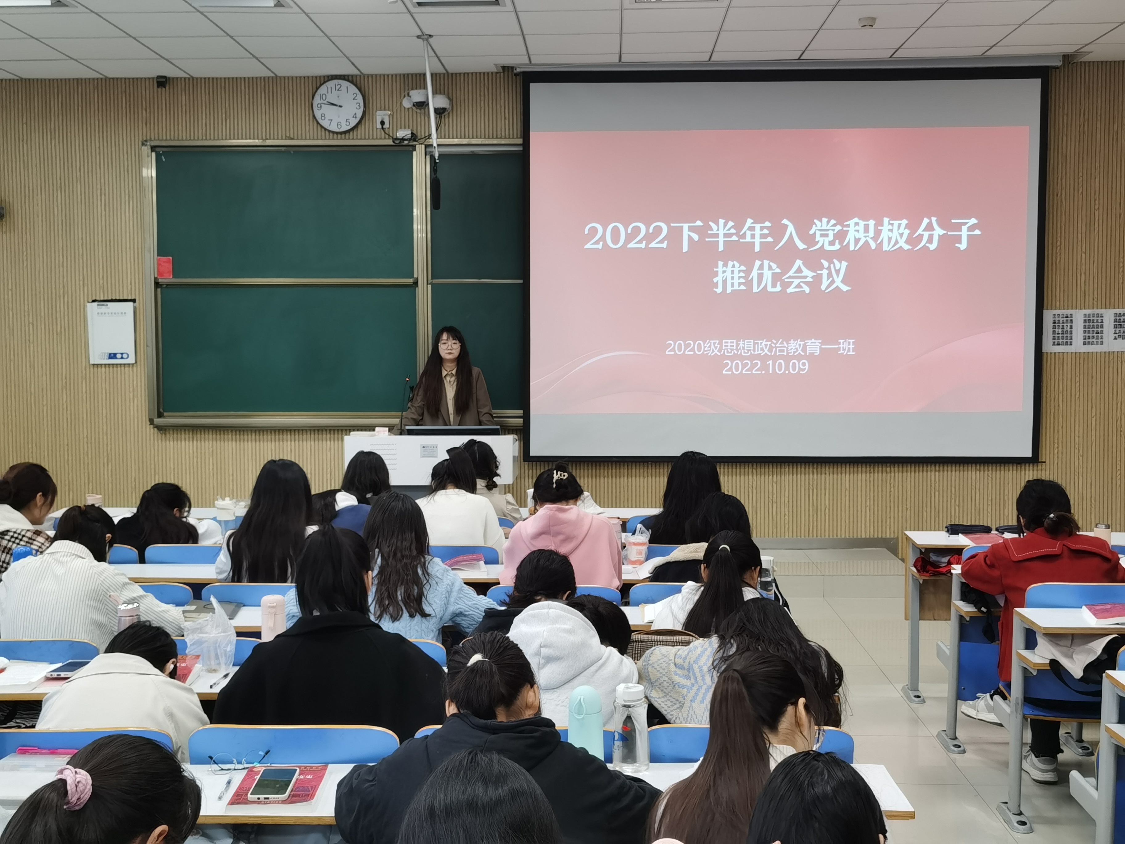 10月9日上午,小说狂人 2020级思想政治教育一班团支部在社科楼515教室召开2022年下半年入党积极分子推优会议。我支部全体团员参加此次推优会议,会议由团支部书记卢茜雨主持。