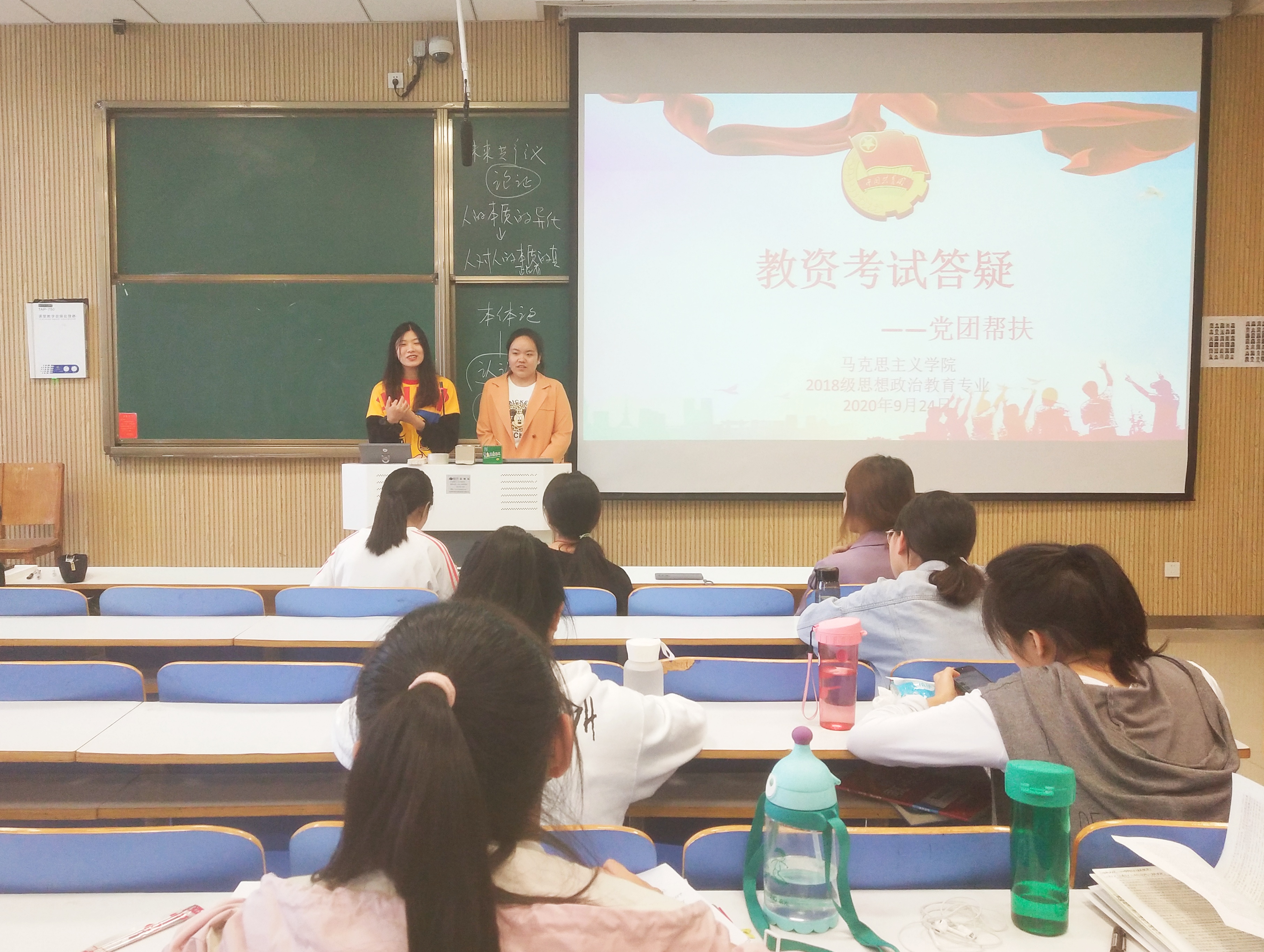 9月24日下午,小说狂人 2018级团支部于社科楼515教室顺利开展主题为“教资考试答疑”的党团帮扶活动。小说狂人 2018级团支部邀请学生党员代表秦康怡、孙慧萍、李梦茹、王琳前来参加本次交流活动。本次活动由2018级第二团支部书记黄子晋主持。