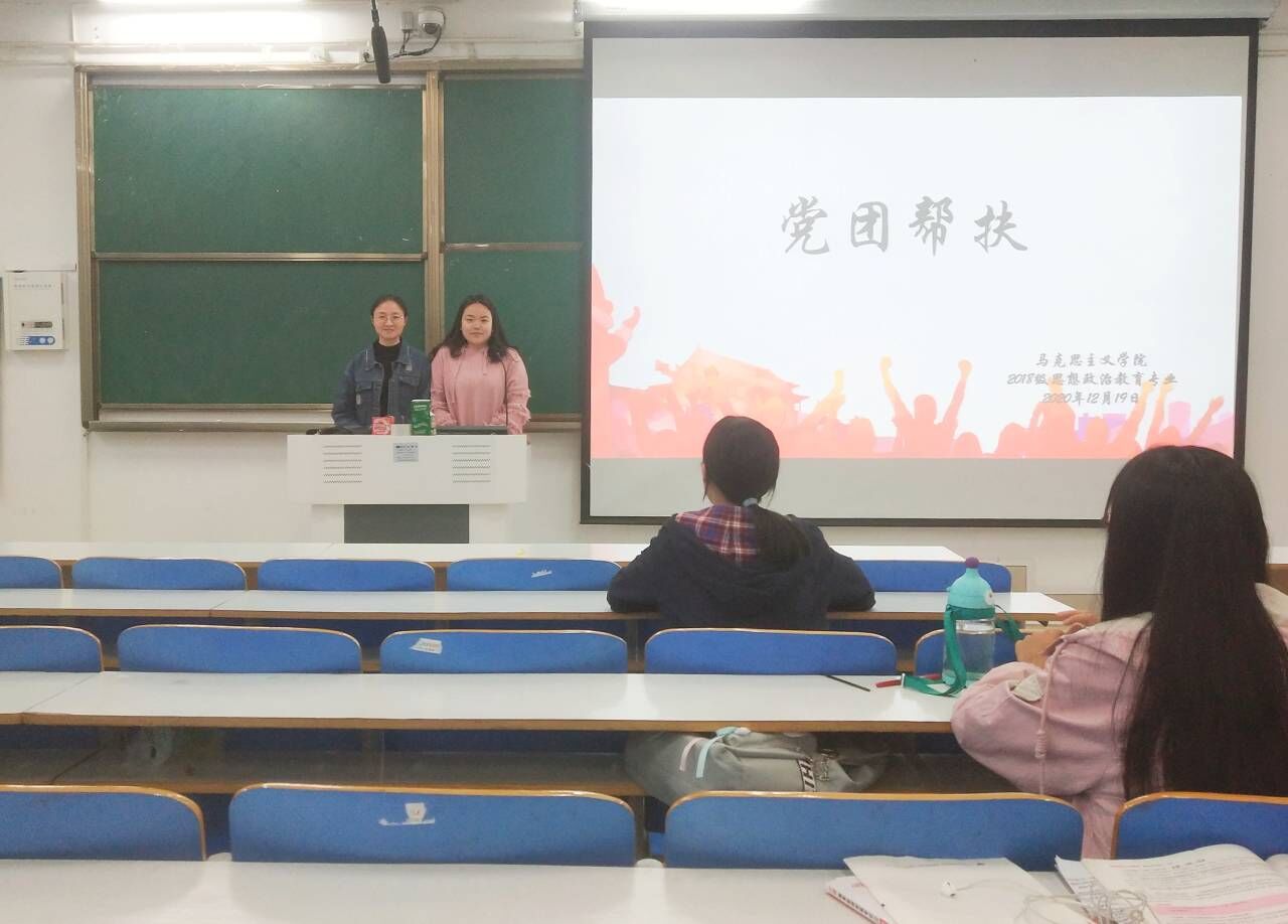 为了充分发挥党员干部的先锋模范作用,12月19日下午,小说狂人 2018级思想政治教育一班在社科楼514教室顺利开展党团帮扶会议。中共党员秦康怡、李梦茹及2018级第一团支部全体成员共同参与本次会议。会议由团支部书记靳雨露主持。