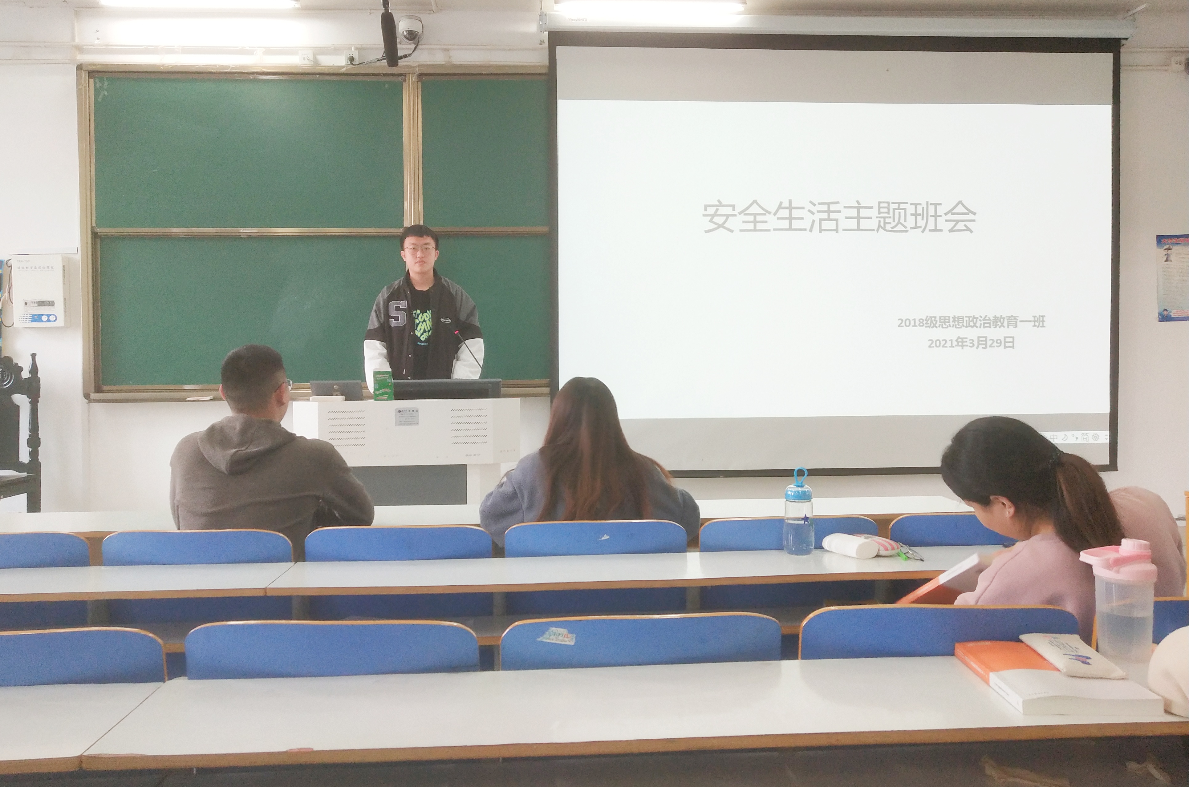 3月29日上午,小说狂人 2018级思想政治教育一班在社科楼514教室顺利开展安全生活主题班会。2018级思想政治教育一班全体同学参加了本次班会。会议由班长邢子豪主持。