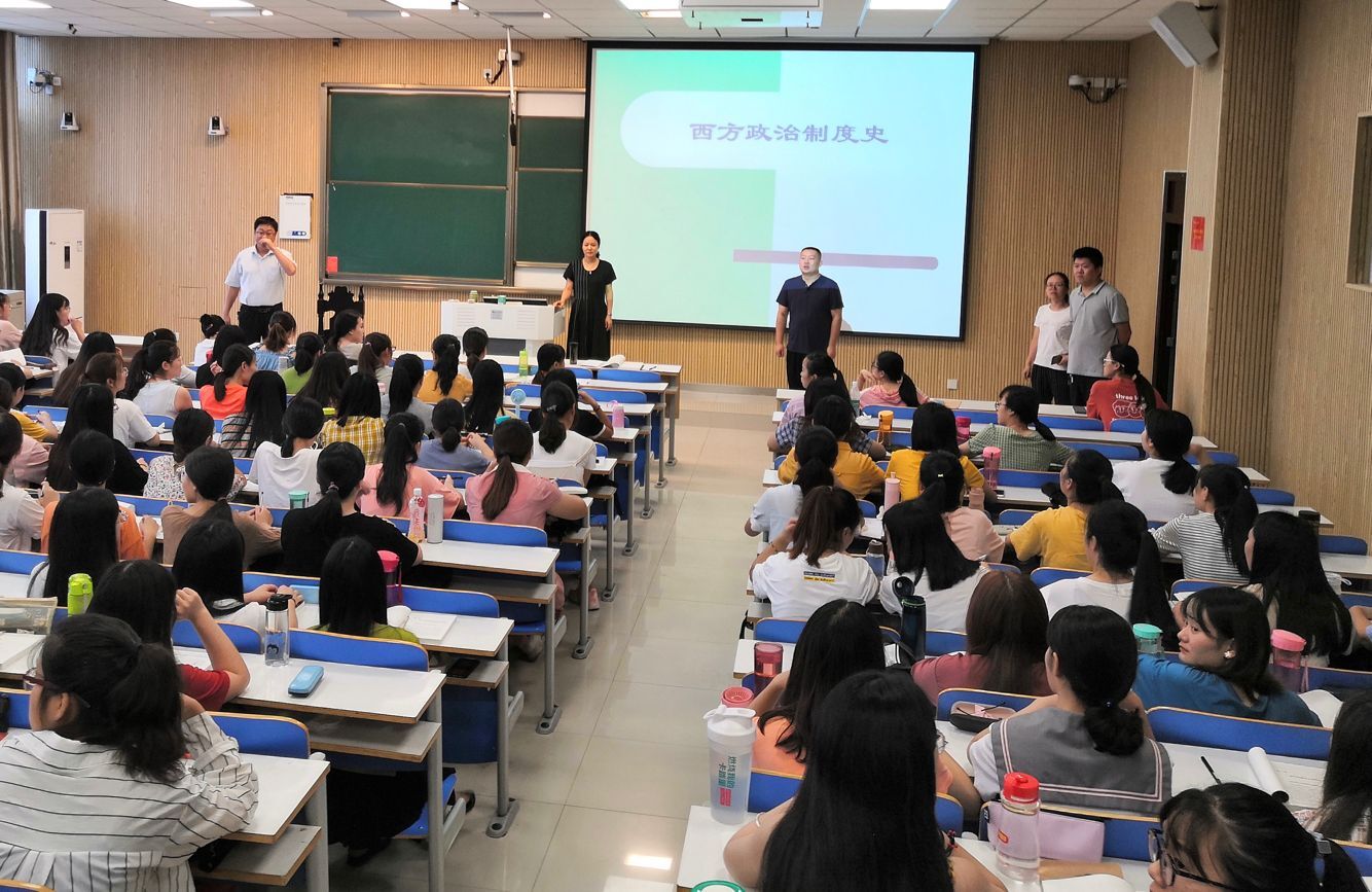 为促进新学期班级学风建设、进一步强化教学管理,9月2日上午,学院副院长程晋富、党委副书记何晓坚、教学秘书訾其伦、专职组织员孙旭曙、团委书记曹栋、专职辅导员曹菁菁深入一线检查课堂教学情况。