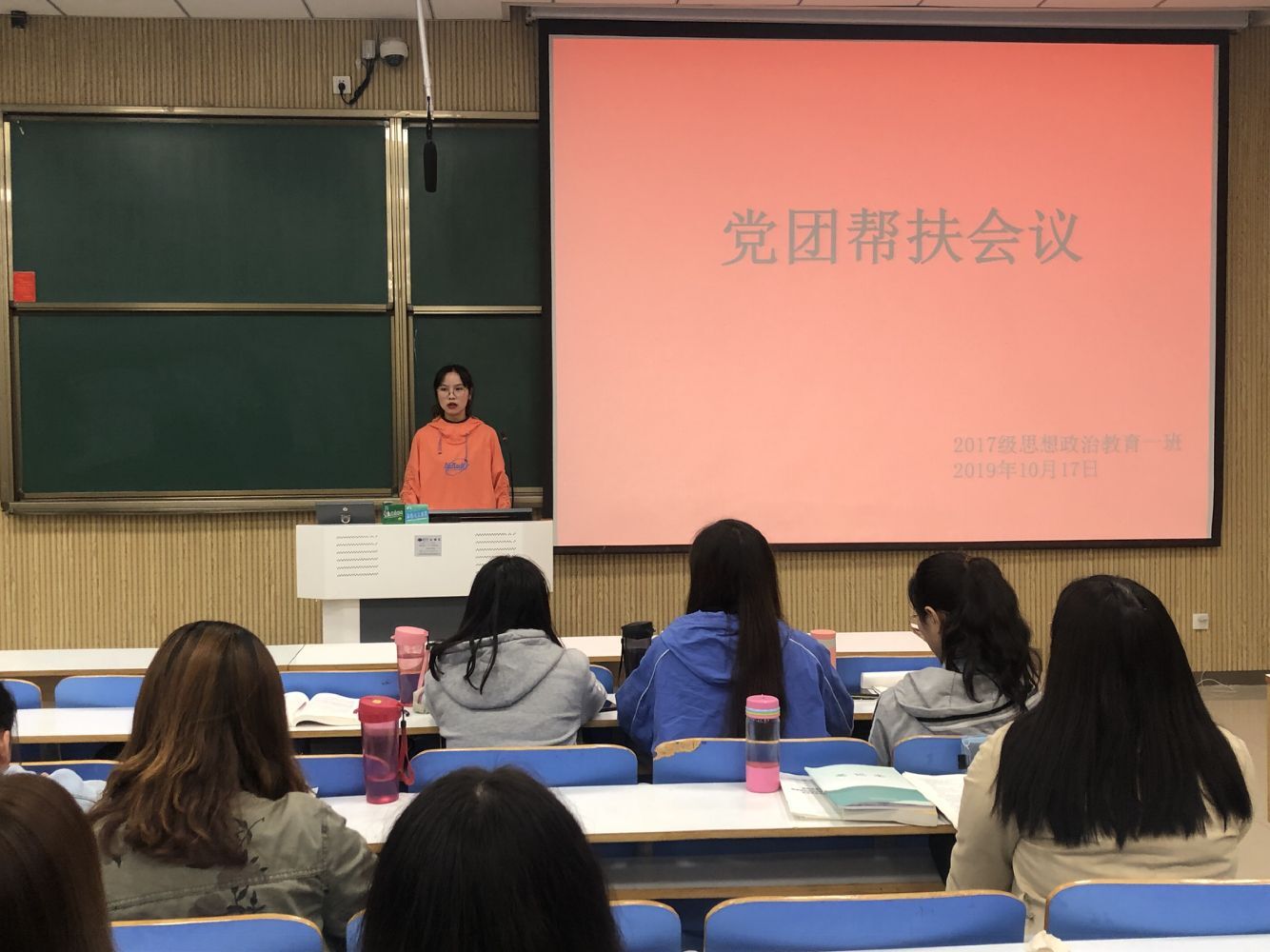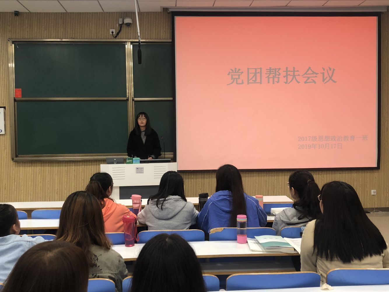 为进一步加强团支部建设,增强团员素养,10月17日,2017级思想政治教育第一团支部在社科楼515教室召开了“党员帮扶团员”主题班会,本次班会由团支书谢文静主持,2016级学生党员景丝丝、王靖雯帮扶。