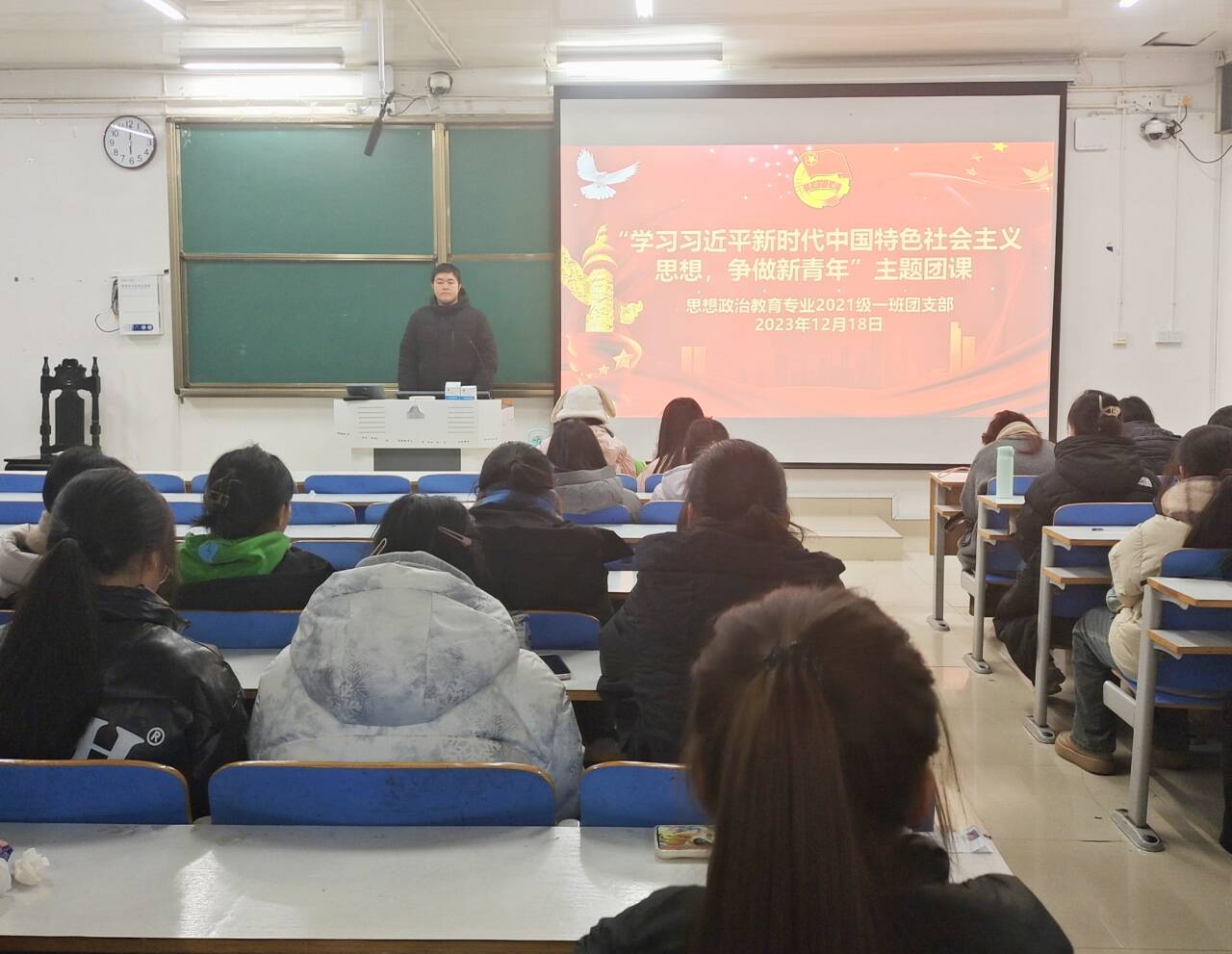 12月18日下午,小说狂人 2021级思想政治教育一班在社科楼514教室召开“学习习近平新时代中国特色社会主义思想,争做新青年”主题团课。2021级思想政治教育一班全体团员参加了此次团课。团课由团支书戴翰林主持。