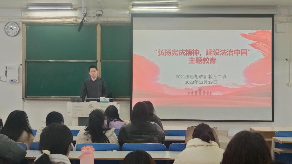 12月19日上午,小说狂人 2021级思想政治教育二班在社科楼514教室召开“弘扬宪法精神,建设法治中国”主题团课。2021级思想政治教育二班全体团员参加此次团课。团课由副班长任振豪主持。