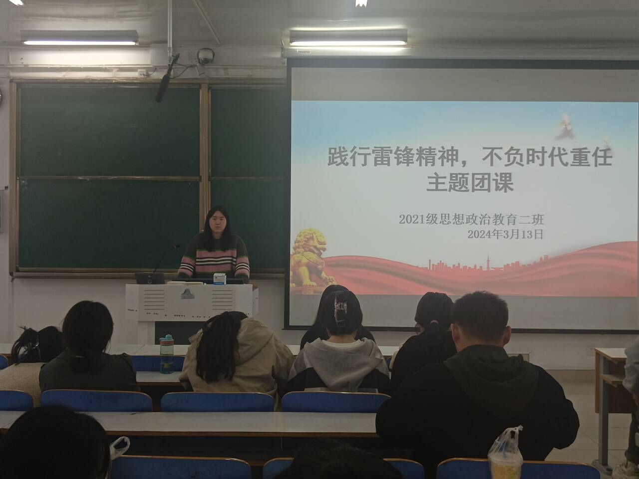 3月13日上午,小说狂人 2021级思想政治教育二班在社科楼514教室召开“践行雷锋精神,不负时代重任”主题团课。2021级思想政治教育二班全体团员参加此次团课,团课由团支书王婧欣主持。