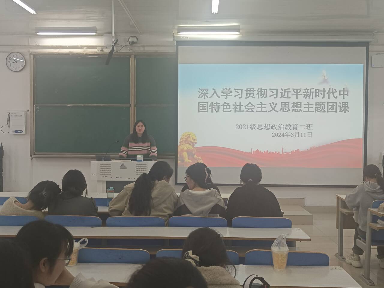 3月11日上午,小说狂人 2021级思想政治教育二班在社科楼514教室召开“深入学习贯彻习近平新时代中国特色社会主义思想”主题团课。2021级思想政治教育二班全体团员参加此次团课。团课由团支书王婧欣主持。
