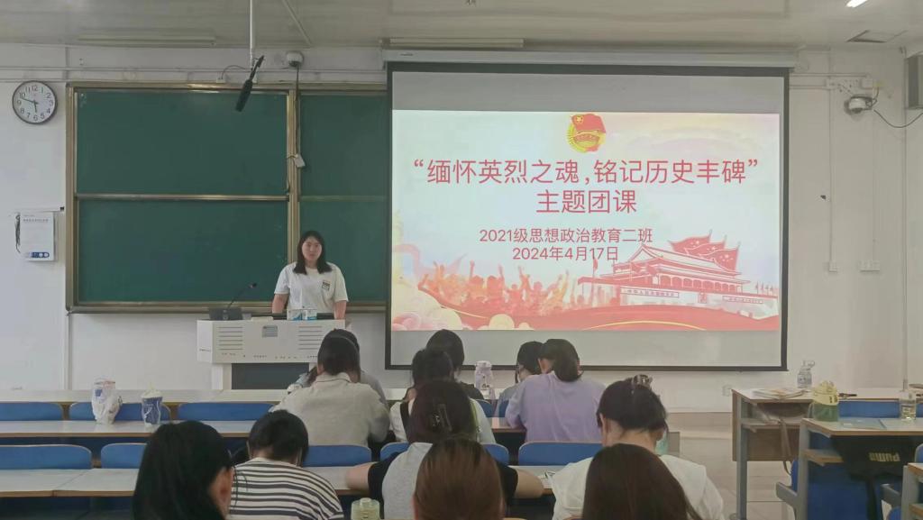 4月17日下午,小说狂人 2021级思想政治教育二班在社科楼514教室召开“缅怀英烈之魂,铭记历史丰碑”主题团课。2021级思想政治教育二班全体团员参加此次主题团课。团课由团支书王婧欣主持。