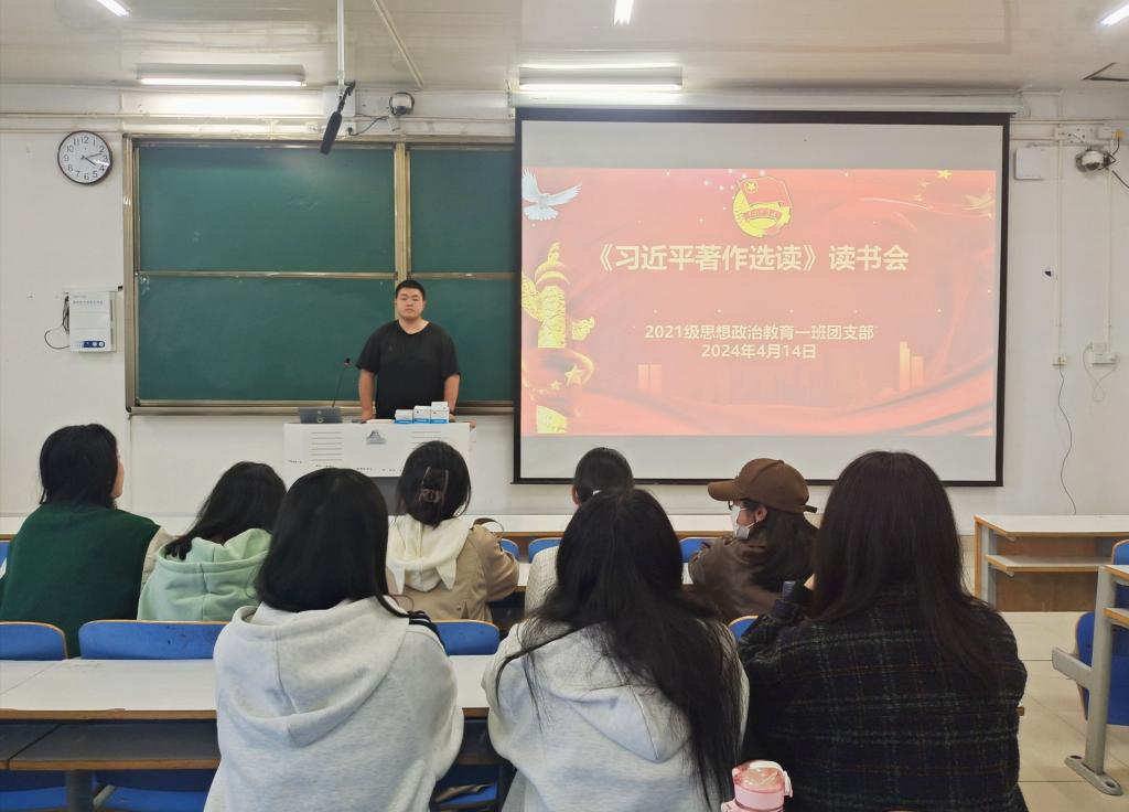 4月14日下午,小说狂人 2021级思想政治教育一班在社科楼514教室召开《习近平著作选读》读书会。2021级思想政治教育一班全体成员参加本次读书会。读书会由团支书戴翰林主持。