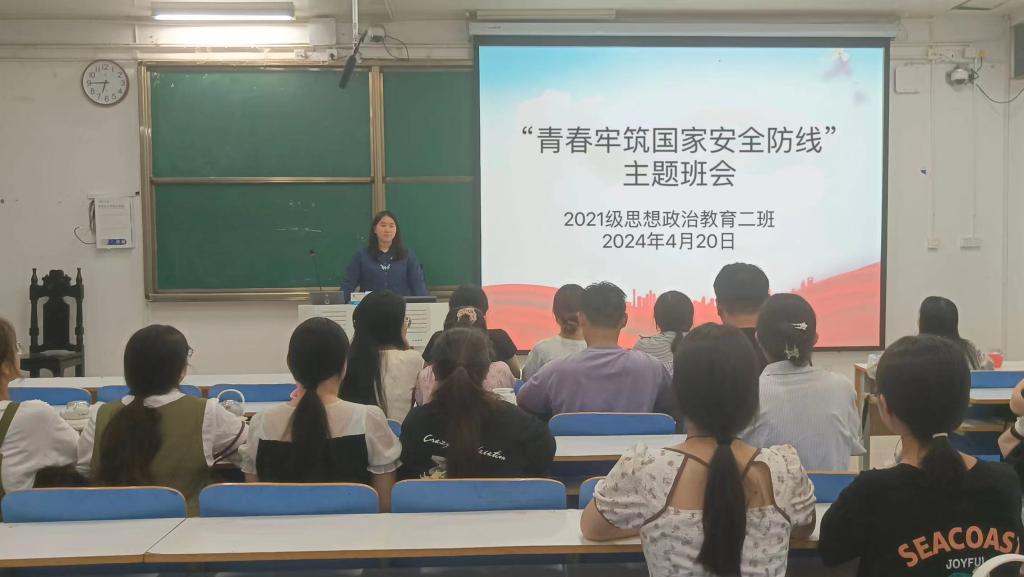 4月20日上午,小说狂人 2021级思想政治教育二班在社科楼514教室召开“青春牢筑国家安全防线”主题班会。2021级思想政治教育二班全体同学参加此次主题班会。班会由团支书王婧欣主持。
