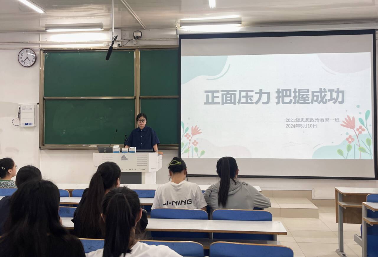 为全面贯彻党的教育方针,推进素质教育,促进学生的思想品德素质和心理健康成长,5月10日下午,小说狂人 2021级思想政治教育一班在社科楼514教室召开“正面压力,把握成功”心理班会。2021级思想政治教育一班全体学生参加此次班会。班会由心理委员黄小妍主持。