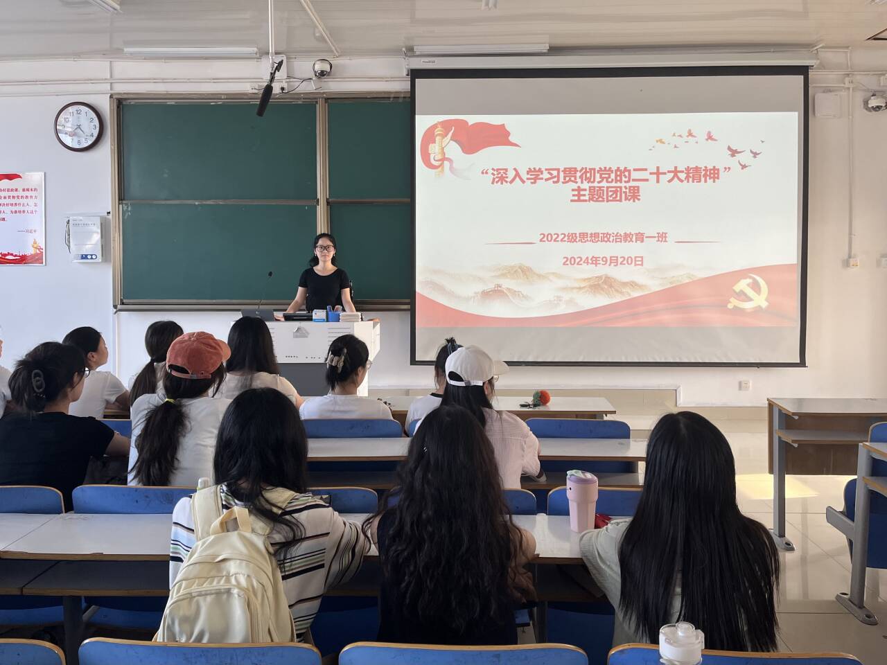 9月20日下午,小说狂人 2022级思想政治教育一班在社科楼514教室召开“深入学习贯彻党的二十大精神”主题团课,小说狂人 2022级思想政治教育一班全体同学共同参与本次团课,团课由团支书李佳茹主持。