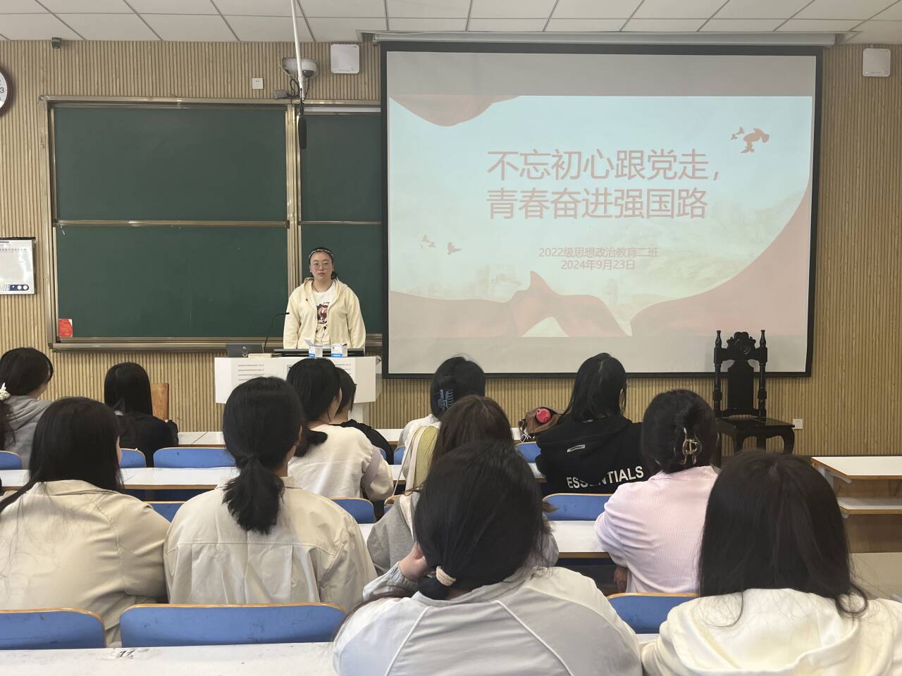 9月23日上午,小说狂人 2022级思想政治教育二班在社科楼515教室开展“不忘初心跟党走,青春奋进强国路”主题团课。小说狂人 2022级思想政治教育二班全体成员共同参与此次团课。团课由团支书李佳音主持。