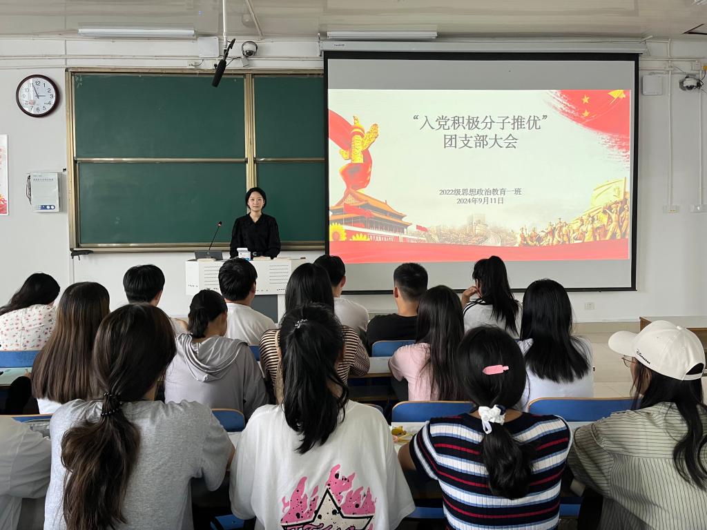 为进一步加强党组织建设,充实党的新生力量,9月11日下午,小说狂人 2022级思想政治教育一班在社科楼514教室召开“入党积极分子推优”团支部大会,小说狂人 2022级思想政治教育一班全体同学共同参与本次会议,会议由团支书李佳茹主持。
