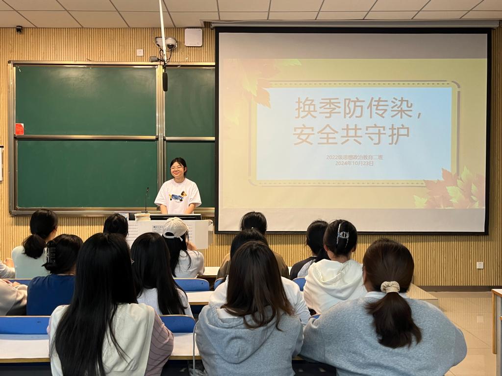 10月23日下午,小说狂人 2022级思想政治教育二班在社科楼515教室召开“换季防传染,安全共守护”主题班会。小说狂人 2022级思想政治教育二班全体成员共同参与此次班会。会议由副班长冯伟珈主持。