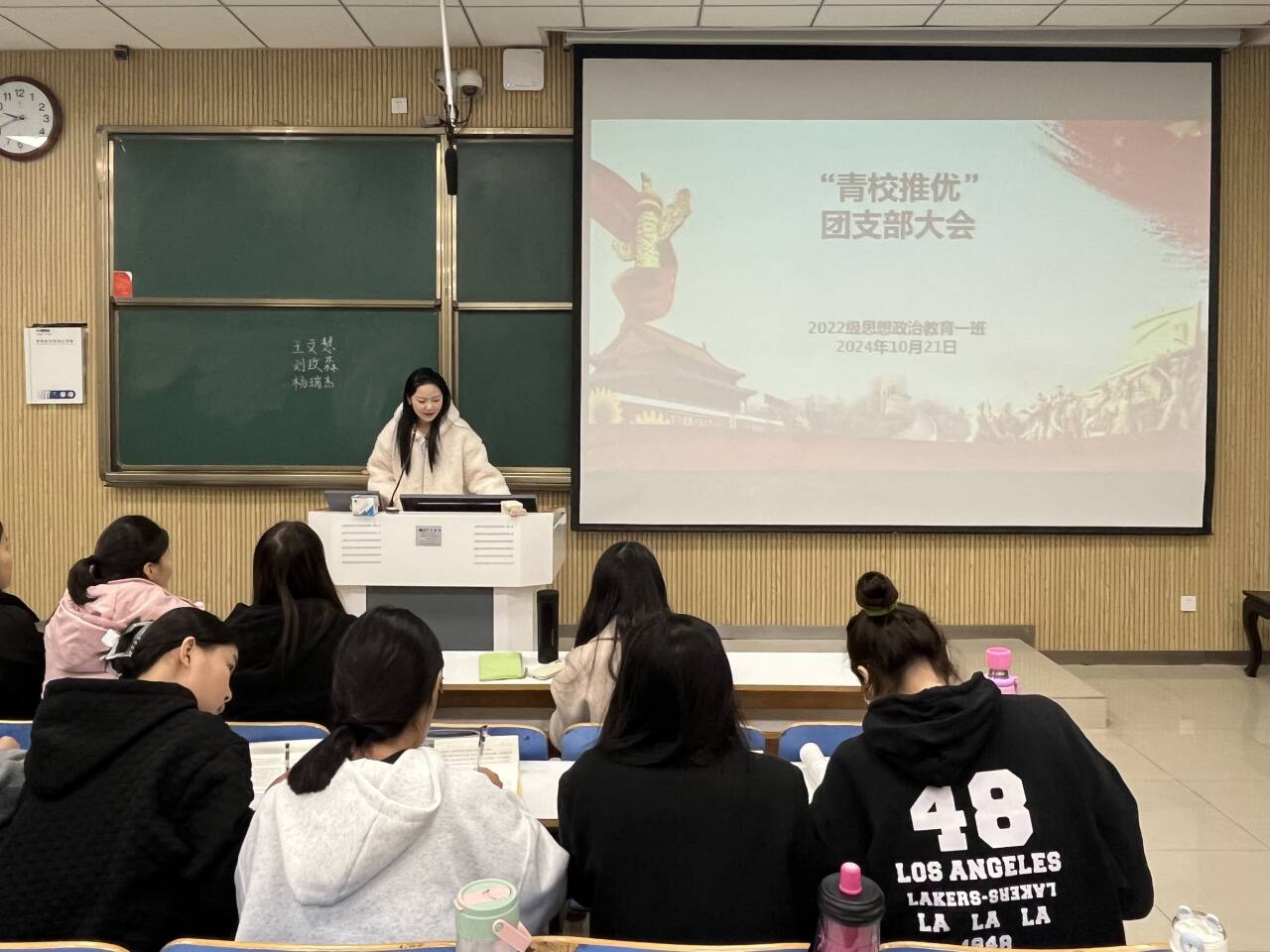 10月21日上午,小说狂人 2022级思想政治教育一班在社科楼515教室召开“青校推优”团支部大会。小说狂人 2022级思想政治教育一班全体团员共同参与本次会议,会议由团支书李佳茹主持。