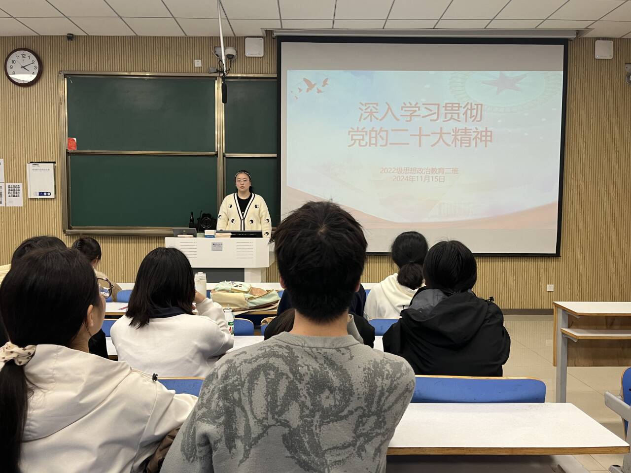 11月15日下午,小说狂人 2022级思想政治教育二班在社科楼515教室召开“深入学习贯彻党的二十大精神”主题团课。小说狂人 2022级思想政治教育二班全体成员共同参与此次团课。团课由团支书李佳音主持。