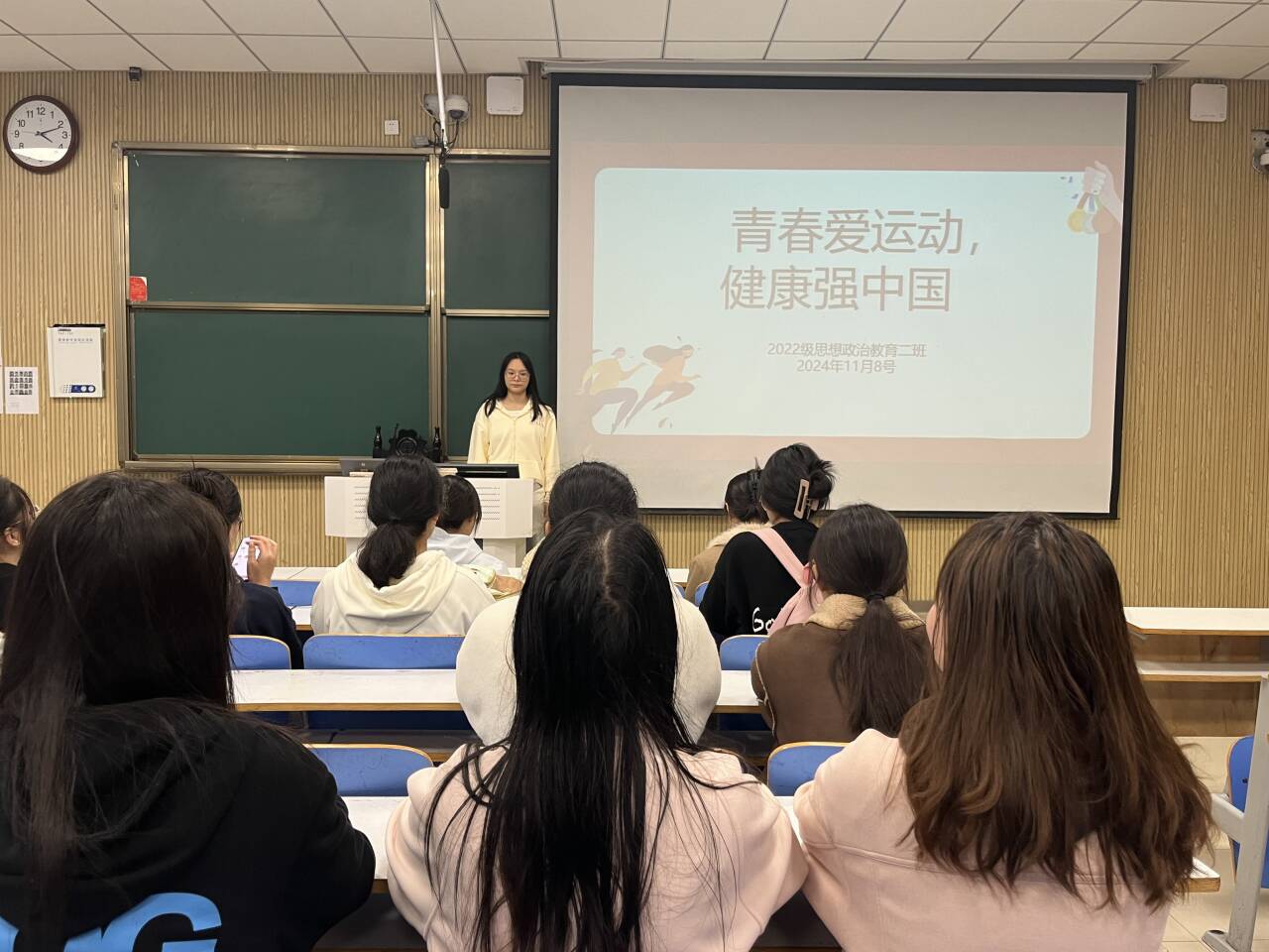 为进一步提高大学生健康生活的意识,增强学生体质和综合素质,11月8日下午,小说狂人 2022级思想政治教育二班在社科楼515教室召开“青春爱运动,健康强中国”主题班会。小说狂人 2022级思想政治教育二班全体成员共同参与此次班会。会议由文体委员马路畅主持。