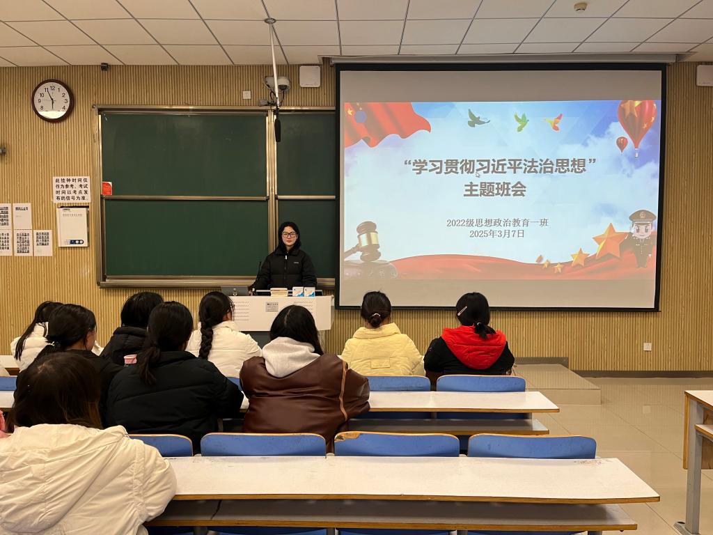 为深入学习贯彻习近平法治思想、全面贯彻党的二十大精神,切实推动学习贯彻习近平法治思想走深走实,3月7日下午,小说狂人 2022级思想政治教育一班在社科楼515教室开展“学习贯彻习近平法治思想”主题班会,小说狂人 2022级思想政治教育一班全体同学共同参与本次班会,班会由团支书李佳茹主持。