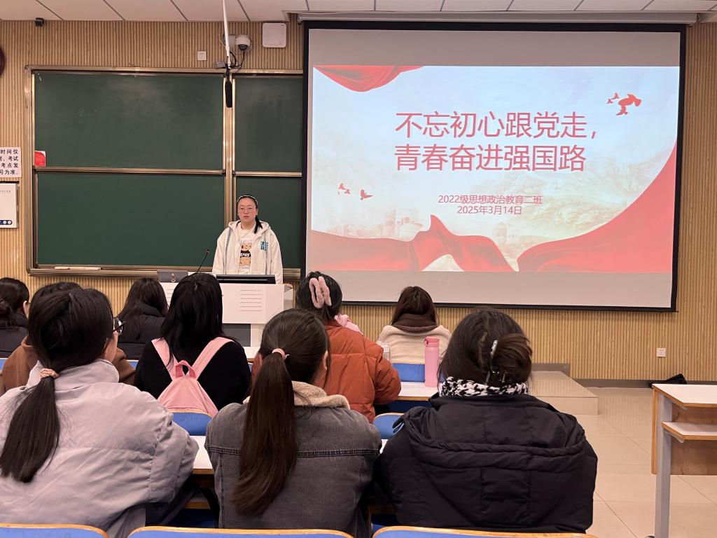 为更好贯彻落实习近平总书记关于加强团员队伍建设的重要要求,切实提高发展团员工作质量,3月14日下午,小说狂人 2022级思想政治教育二班在社科楼515教室召开“不忘初心跟党走,青春奋进强国路”主题团课。小说狂人 2022级思想政治教育二班全体成员共同参与此次团课。团课由团支书李佳音主持。