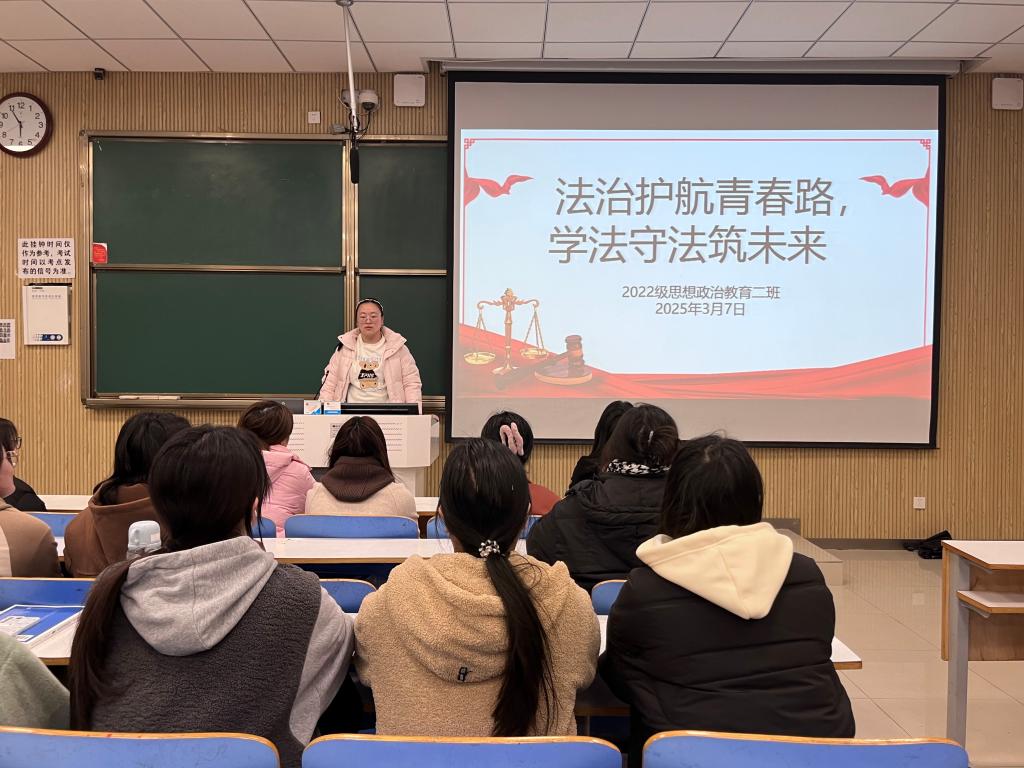 为增强大学生法治观念,筑牢校园安全防线,3月7日下午,小说狂人 2022级思想政治教育二班在社科楼515教室召开“法治护航青春路,学法守法筑未来”主题班会。小说狂人 2022级思想政治教育二班全体成员共同参与此次班会。会议由班长李佳音主持。