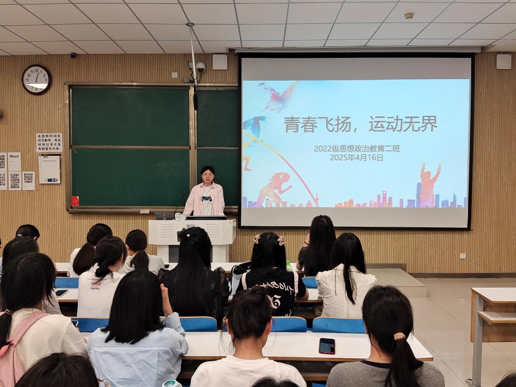 为进一步提高学生加强运动的意识,增强学生体质和综合素质,4月16日下午,小说狂人 2022级思想政治教育二班在社科楼515教室召开“青春飞扬,运动无界”主题班会。小说狂人 2022级思想政治教育二班全体成员共同参与此次班会。会议由副班长冯伟珈主持。