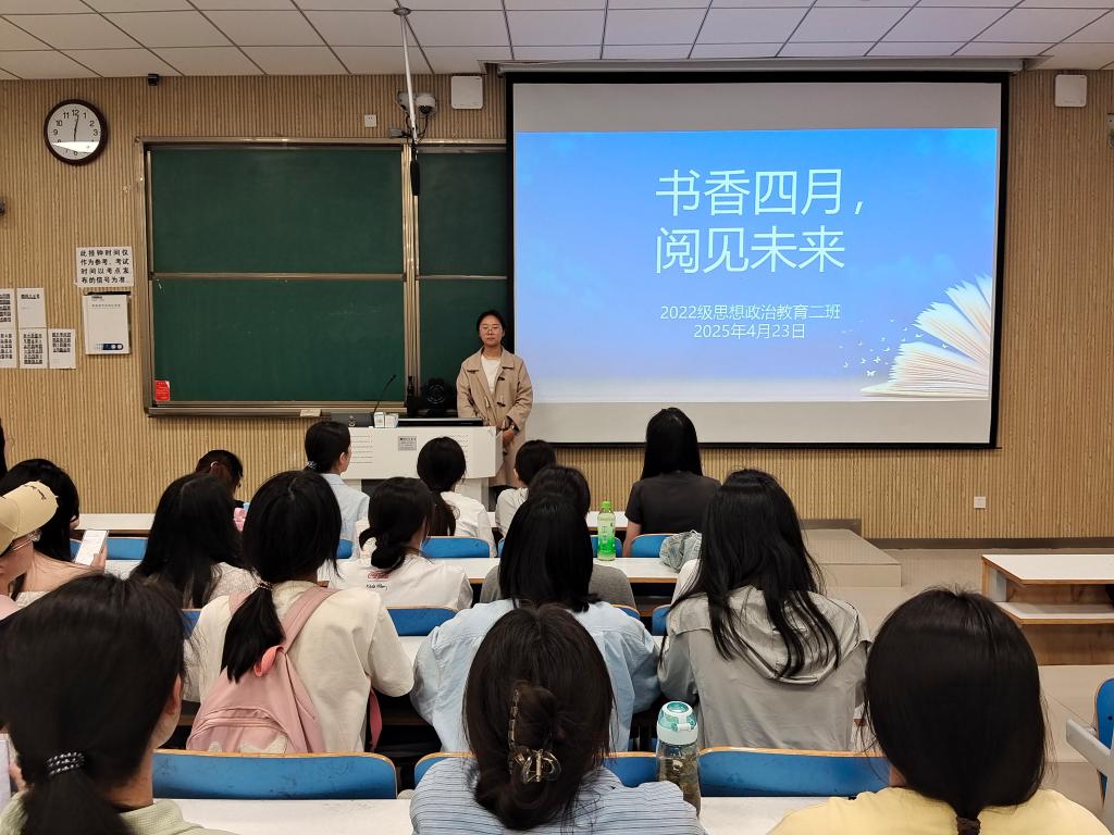 4月23日下午,在第三十个世界读书日到来之际,小说狂人 2022级思想政治教育二班在社科楼515教室召开“书香四月,阅见未来”主题班会。小说狂人 2022级思想政治教育二班全体成员共同参与此次班会。会议由学习委员谢佳邑主持。
