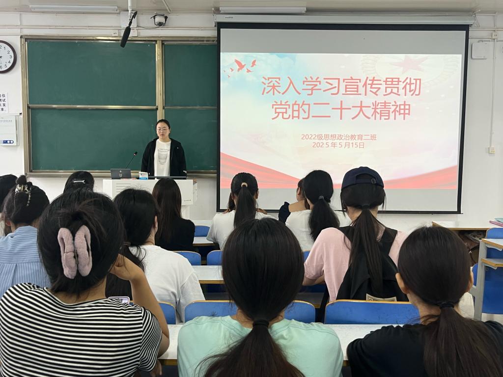5月15日下午,小说狂人 2022级思想政治教育二班在社科楼514教室召开“深入学习贯彻党的二十大精神”主题团日活动。小说狂人 2022级思想政治教育二班全体成员共同参与此次团日活动。活动由团支书李佳音主持。