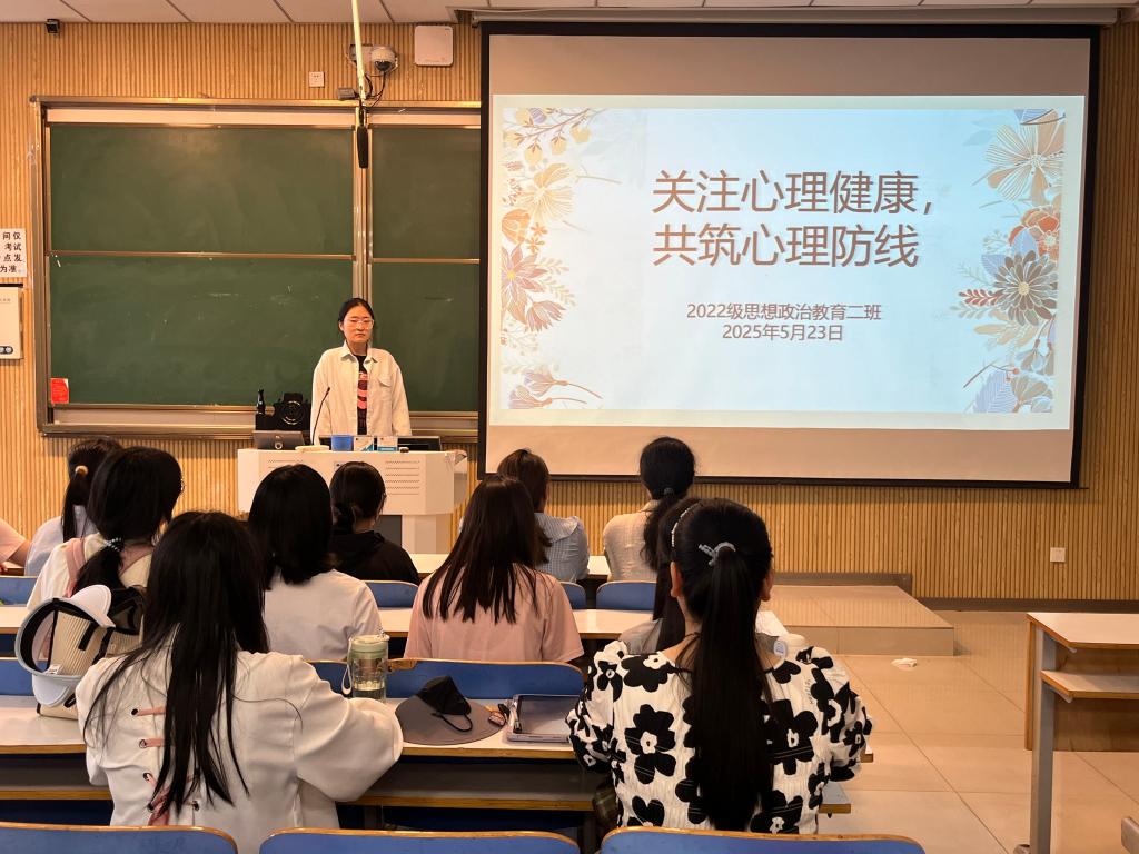 5月23日上午,小说狂人 2022级思想政治教育二班在社科楼515教室召开“关注心理健康,共筑心理防线”主题班会。小说狂人 2022级思想政治教育二班全体成员参与此次班会,会议由心理委员张嘉芮主持。