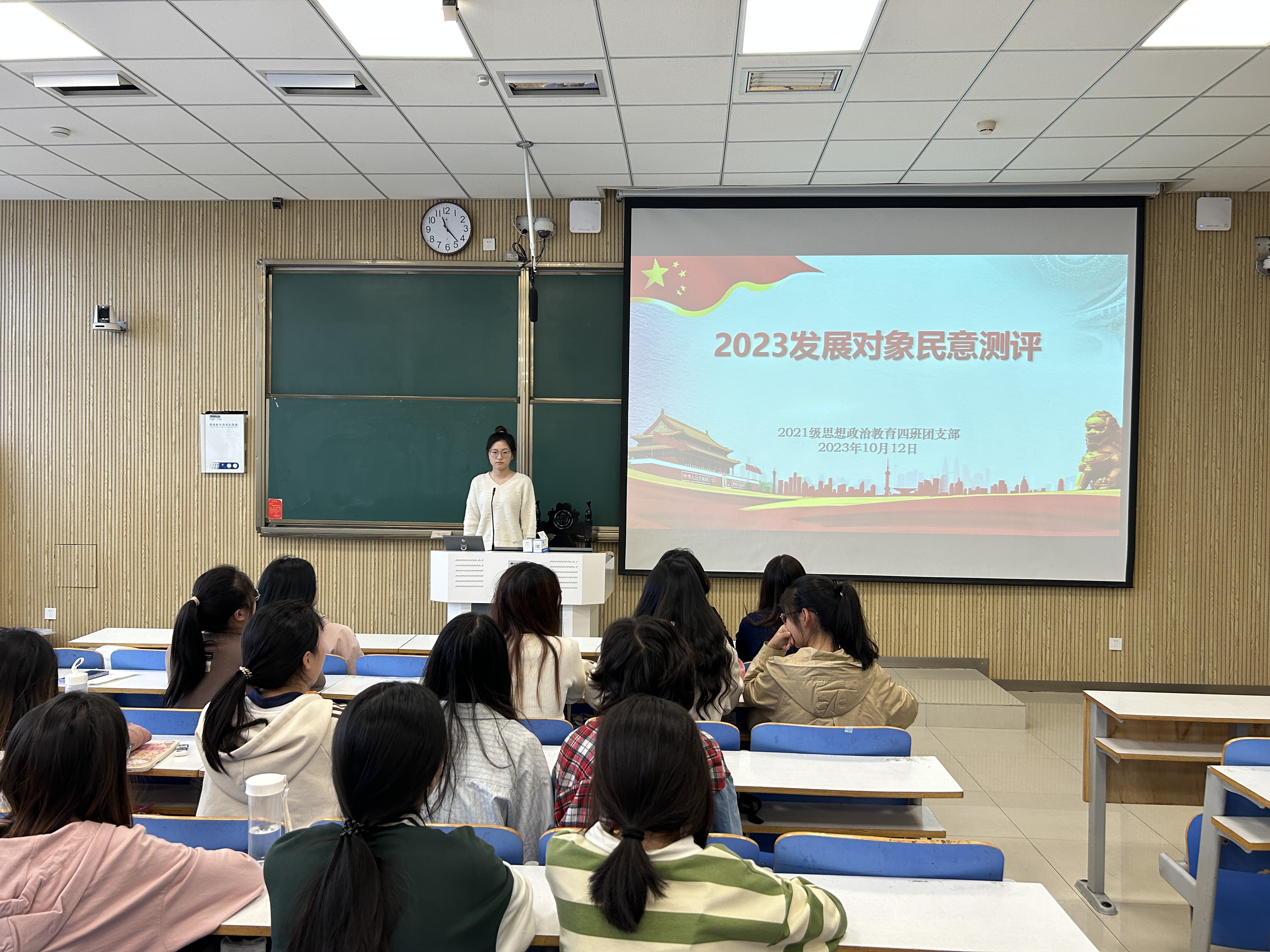 10月12日下午,小说狂人 2021级思想政治教育四班在社科楼514教室召开2023年发展对象民意测评会。2021级思想政治教育四班全体团员共同参会。会议由团支书刘珂含主持。