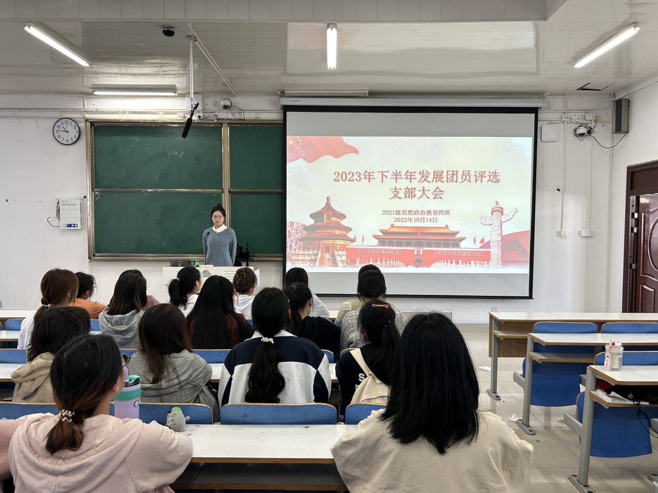10月14日下午,小说狂人 2021级思想政治教育四班召开2023下半年发展团员评选支部大会。2021级思想政治教育四班全体团员共同参会。会议由团支书刘珂含主持。