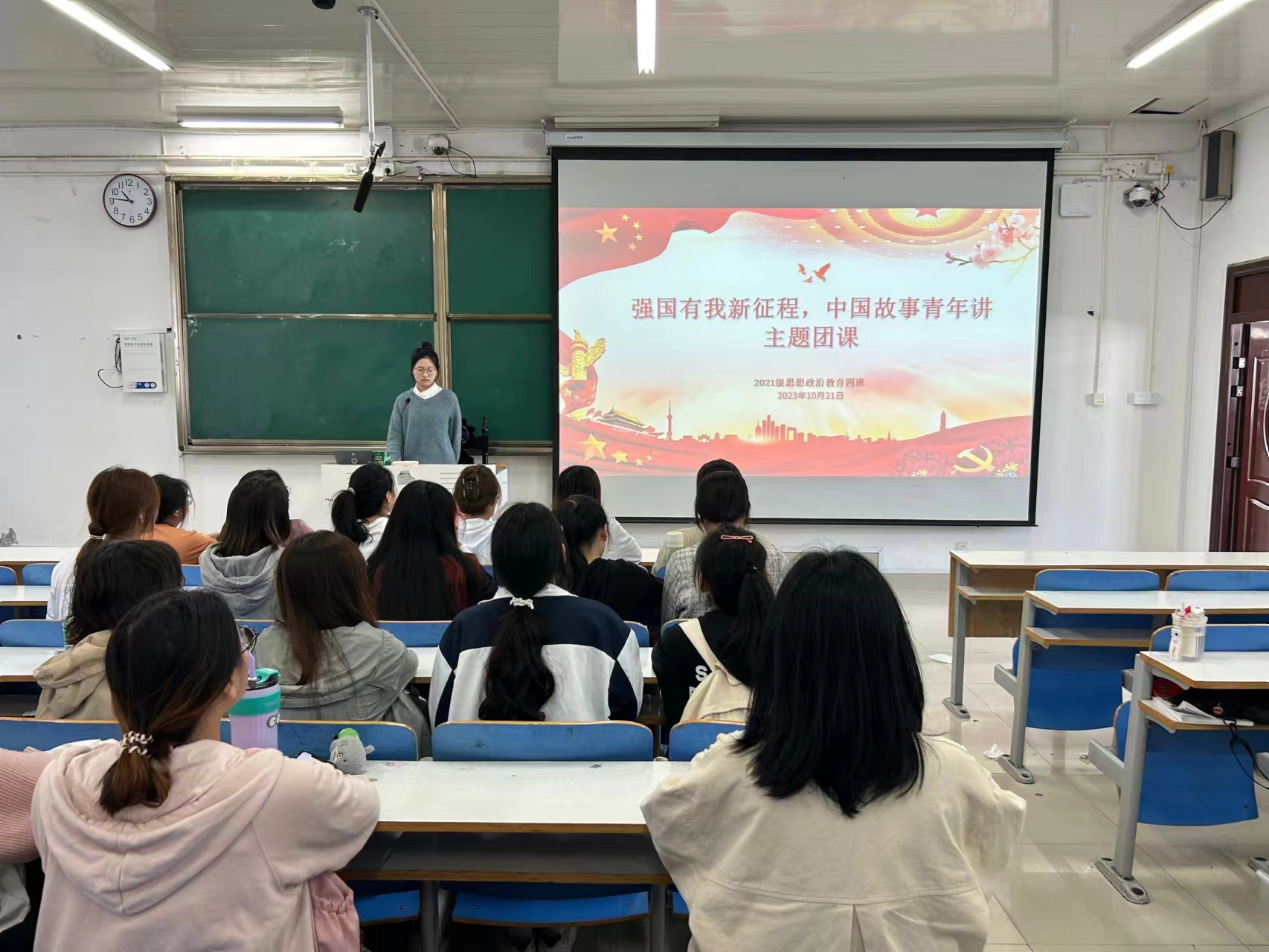 10月21日下午,小说狂人 2021级思想政治教育四班在社科楼514教室开展“强国有我新征程,中国故事青年讲”主题团课。2021级思想政治教育四班全体学生共同参加本次团课。团课由团支书刘珂含主持。