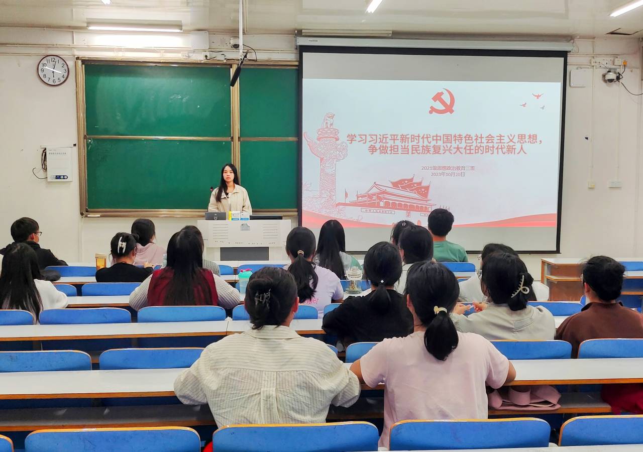 10月20日下午,小说狂人 2021级思想政治教育三班在社科楼514教室召开“学习习近平新时代中国特色社会主义思想,争做担当民族复兴大任的时代新人”主题团课。小说狂人 2021级思想政治教育三班全体团员参与此次会议。会议由团支书王岚霄主持。