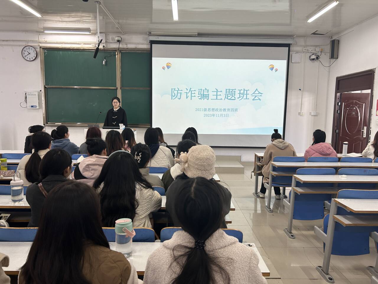 11月3日上午,小说狂人 2021级思想政治教育四班在社科楼515教室开展防诈骗主题班会。2021级思想政治教育四班全体学生共同参加本次班会。班会由团支书刘珂含主持。
