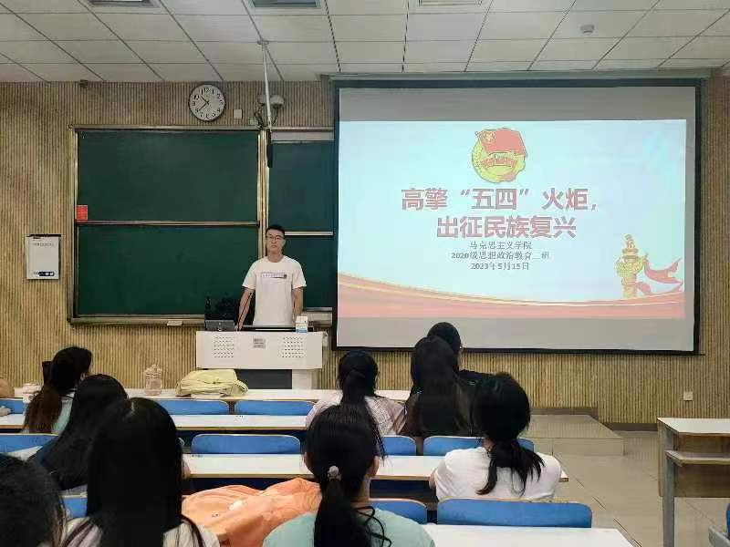 5月15日上午,小说狂人 2020级思想政治教育二班、定向二班在社科楼515教室开展“高擎五四火炬,出征民族复兴”主题团课,二班、定向二班全体团员共同参与本次团课。团课由团支书陈宇航主持并讲授。