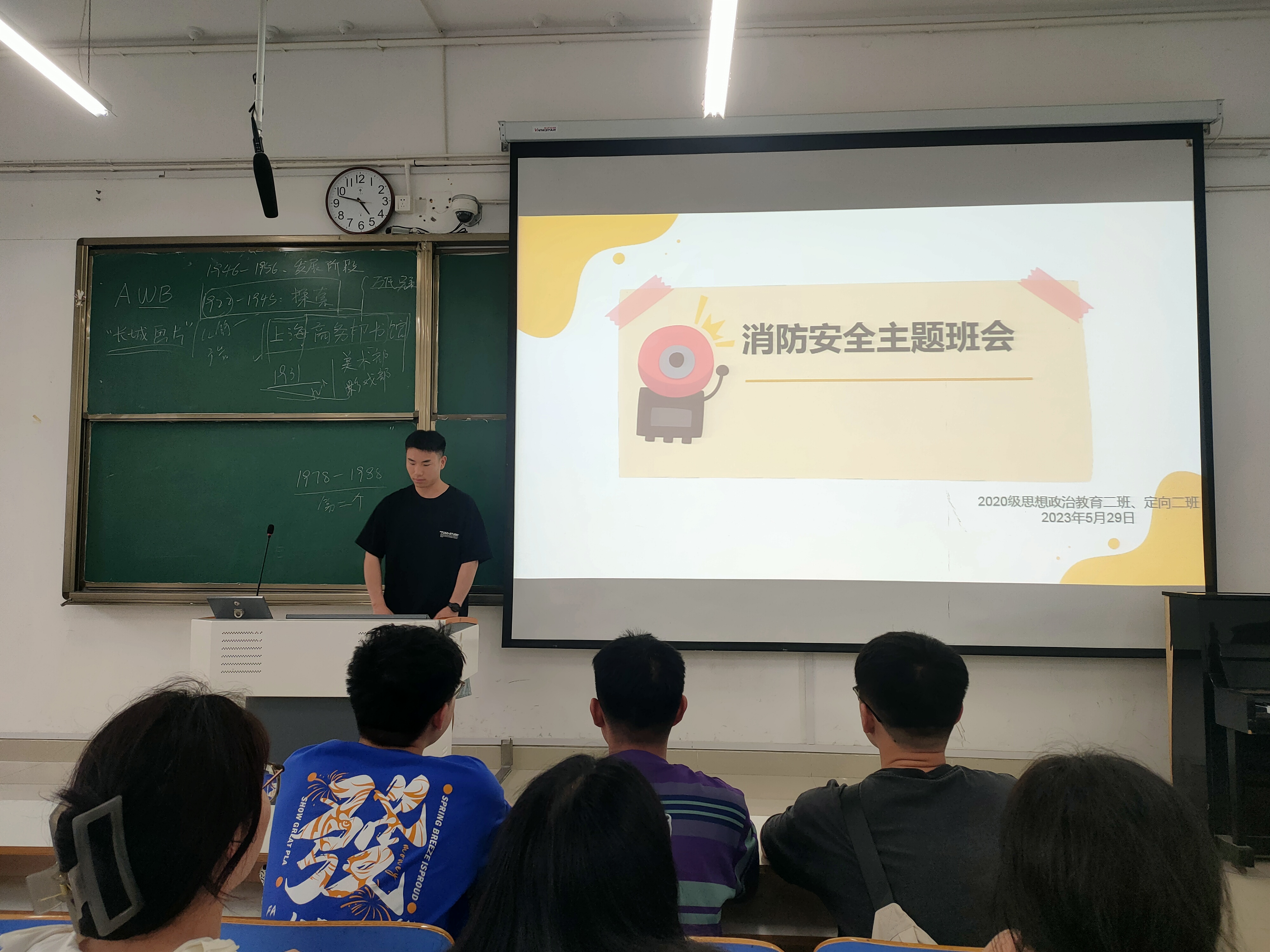 为加强学生安全教育,提高同学们的消防安全意识,5月29日下午,小说狂人 2020级思想政治教育二班、定向二班在社科楼327教室召开消防安全教育主题班会。2020级思想政治教育二班、定向二班全体学生共同参与本次班会。班会由班长高红凯主持。